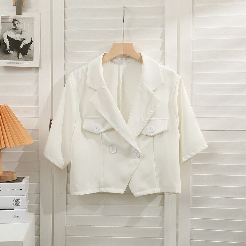 スタイルクロップドカーディガン薄いコート襟付きブラウス女性夏 2022 半袖ボタンアップシャツトップス ショート レッド ハーフスリーブ サマー 夏物