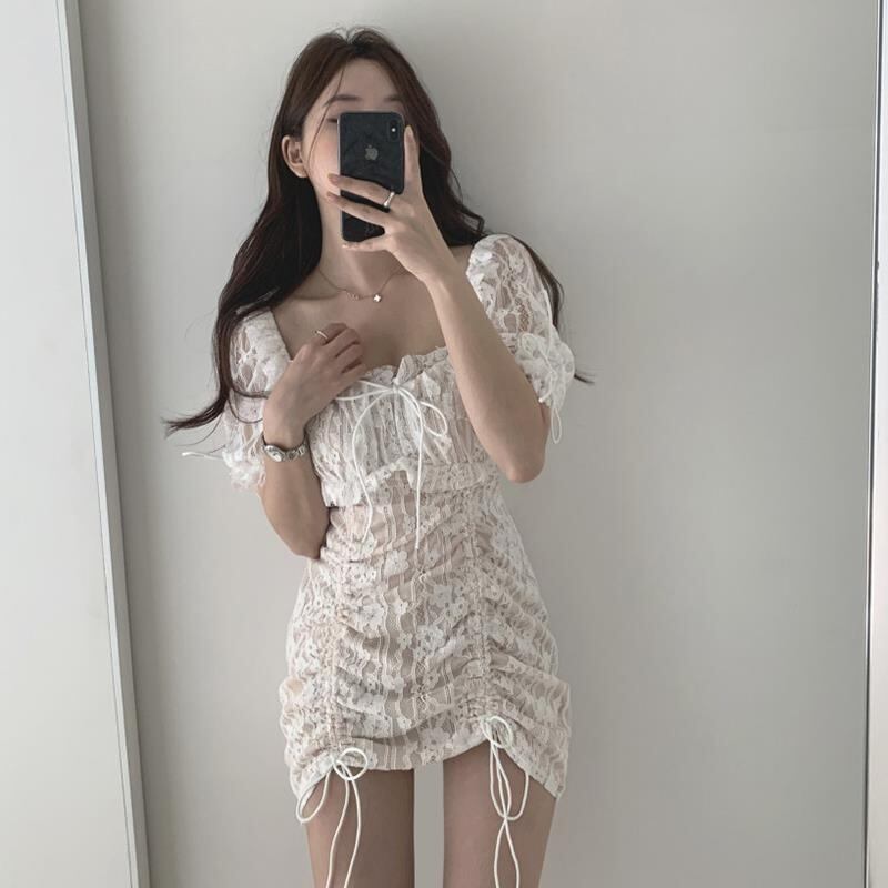 ボディコン ドレス女性夏 2021 レース ミニ ドレス パーティー ストリート ストリート Y2k サマー 夏物