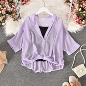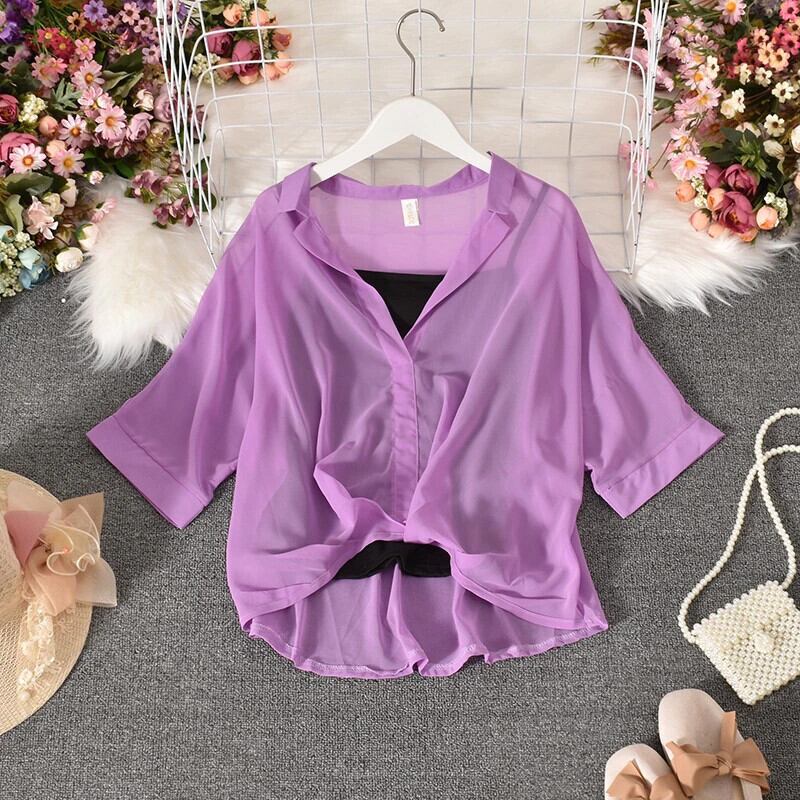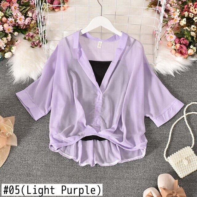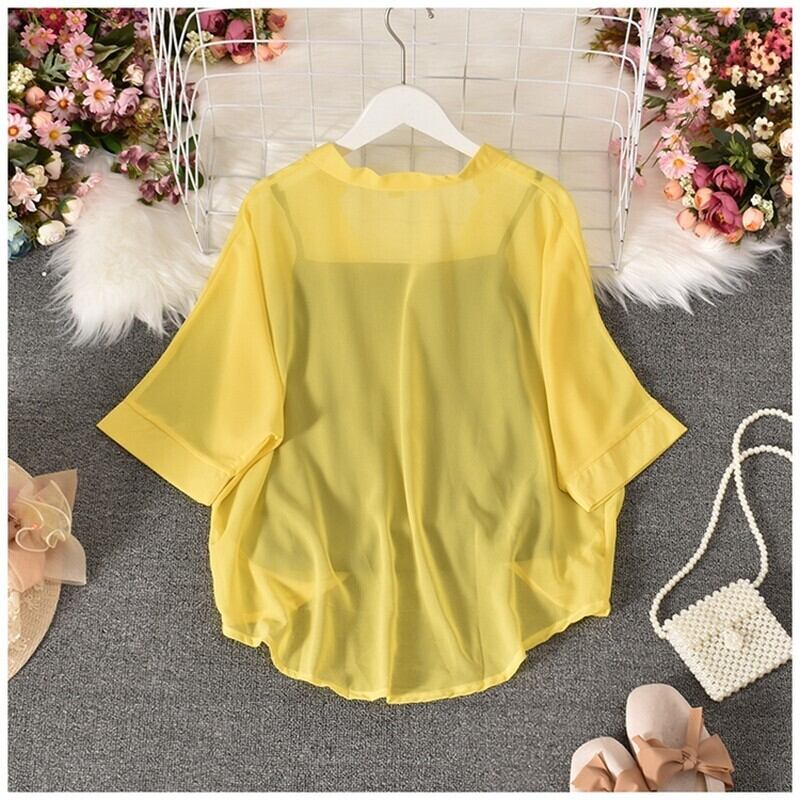 Tシャツ半袖ケリシャツルーズブラウスシフォンシャツ女性夏日焼け止めオールマッチ薄手半袖 ショート ハーフスリーブ サマー 夏物