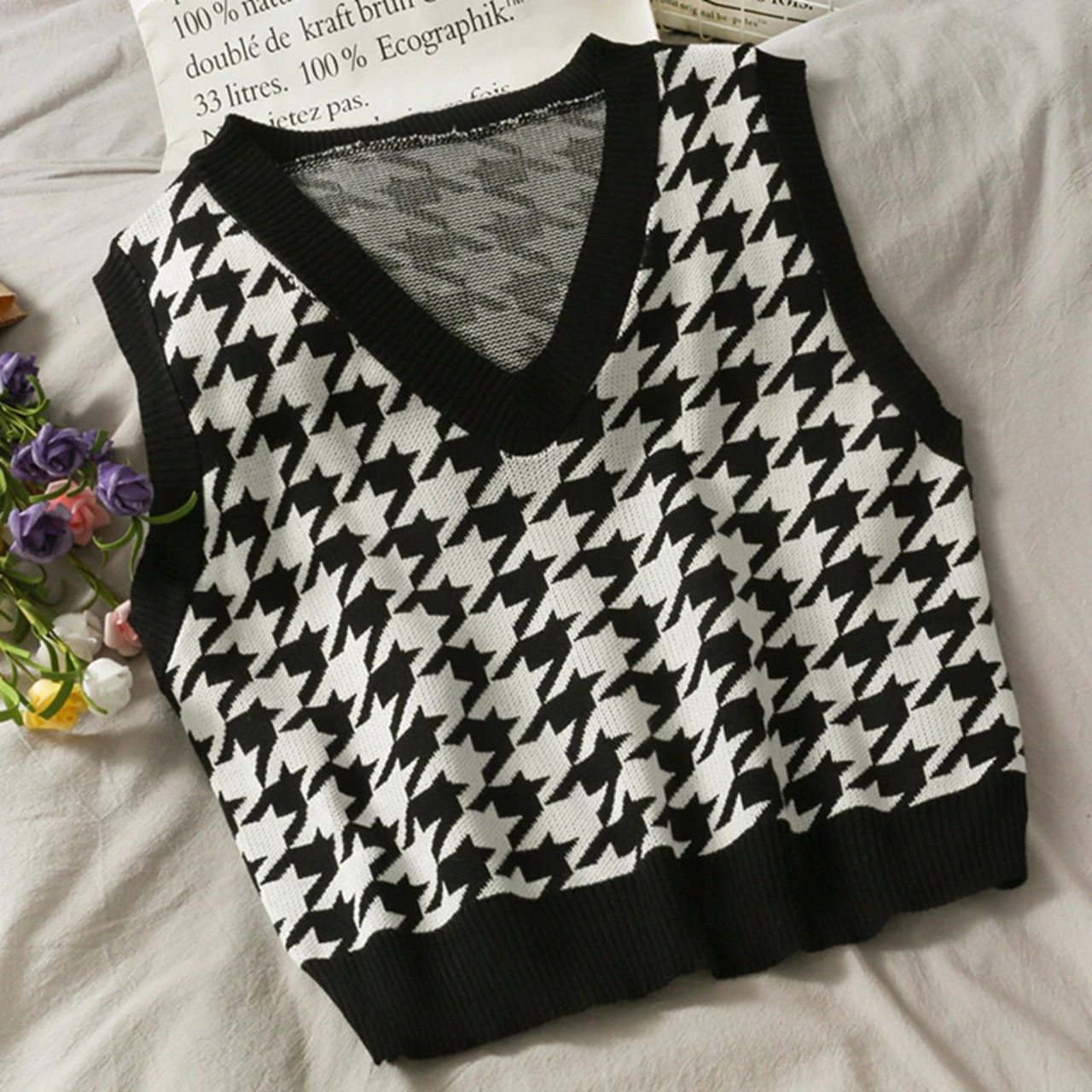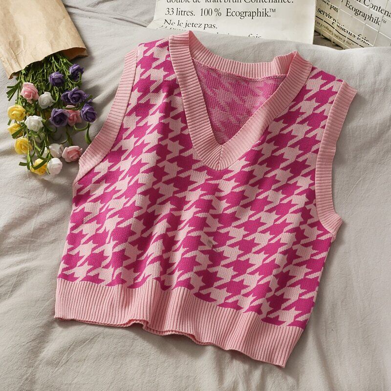 春秋クロップドセーターベスト女性プレッピースタイル Y2k トップノースリーブ V ネックニットベストジャンパー 90 s 服 スプリング 春物 オータム 秋物 Vネック