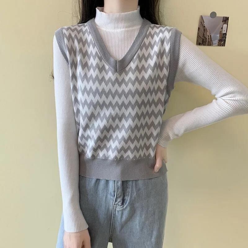 女性セーターベスト春 2021 秋の女性ストライプルーズニットセーターノースリーブ V ネックプルオーバートップスアウター スプリング 春物 オータム 秋物 Vネック
