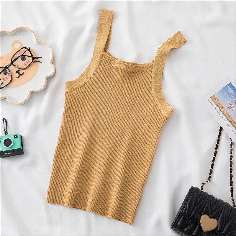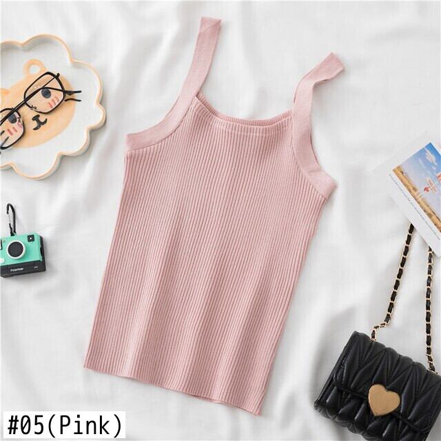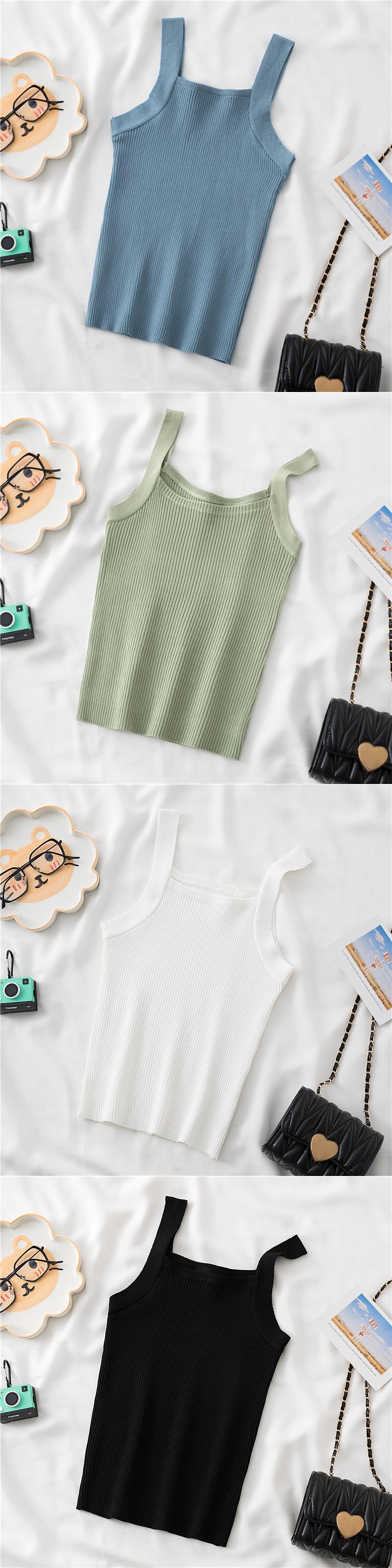 女性無地ノースリーブニット弾性クロップタンクトップキャミスリングトップス y2k キャミソール服スリムストリート エラスティック 伸縮 ソリッドカラー