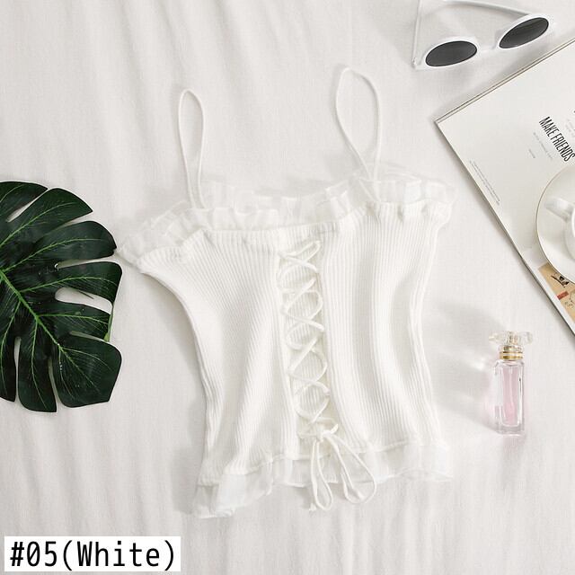 女性の夏 2022 キャミフリルタンクトップノースリーブ Tシャツ Y2k ストラップキャミソールセクシーなストリート ラッフル サマー 夏物