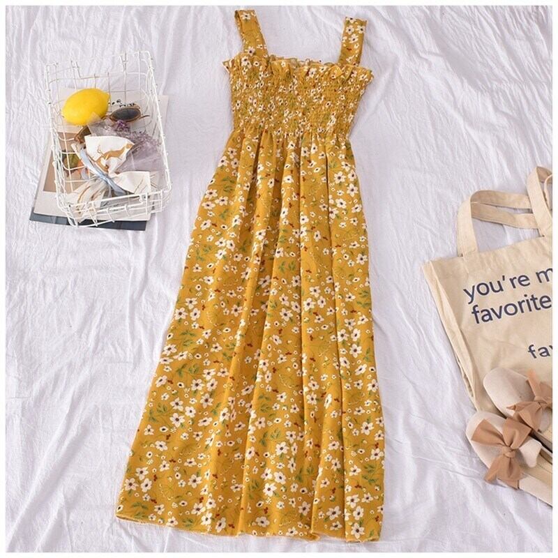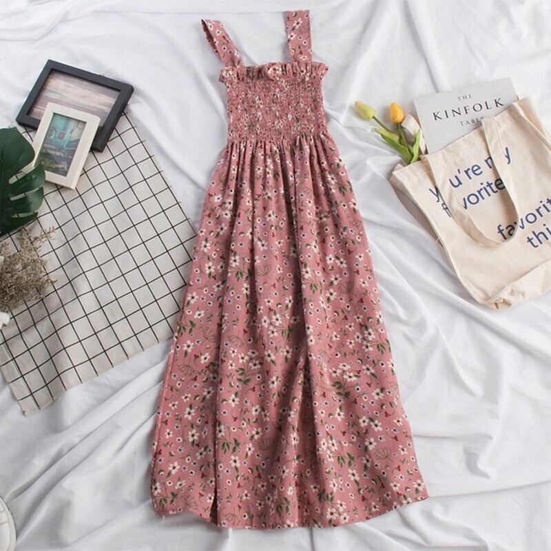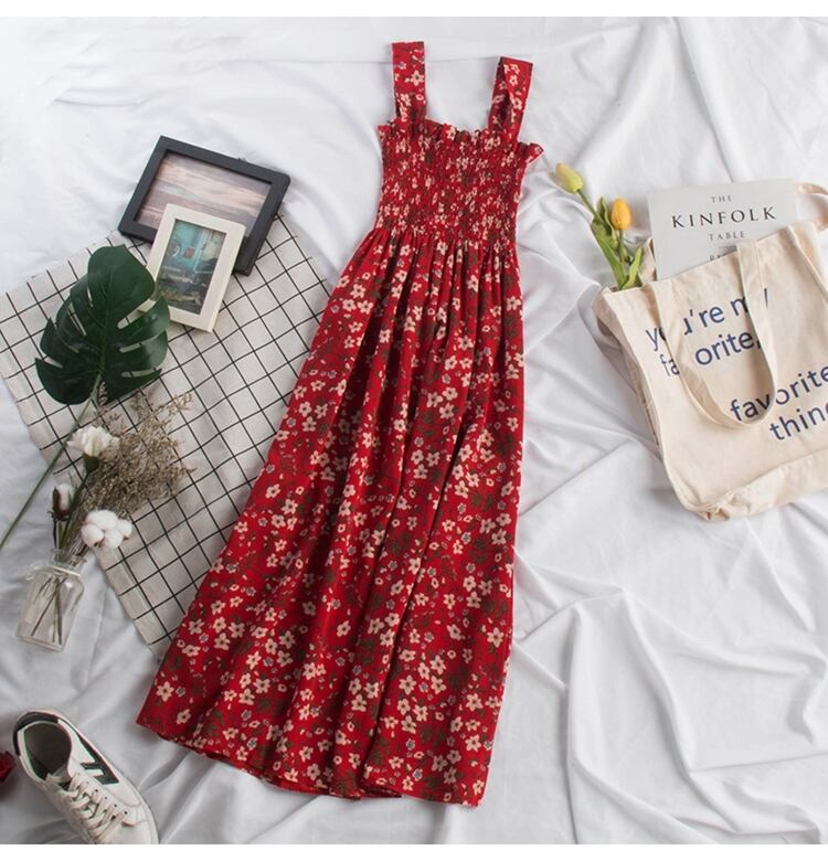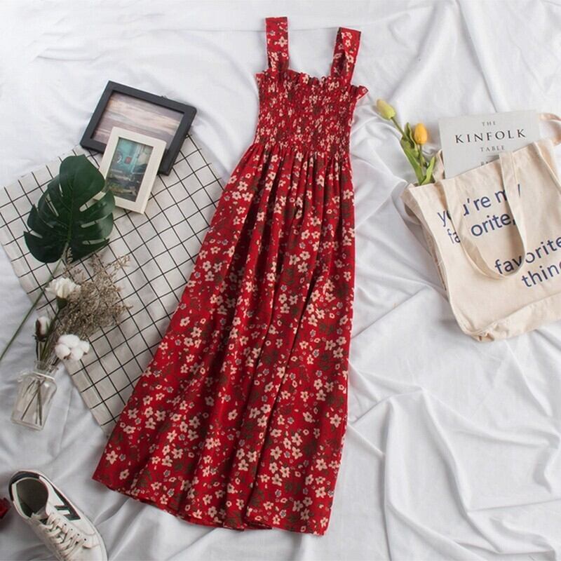 2021 夏の女性ノースリーブ花柄自由奔放に生きるミディドレスビーチキャミドレスボヘミアン服ストリート無料 サマー 夏物