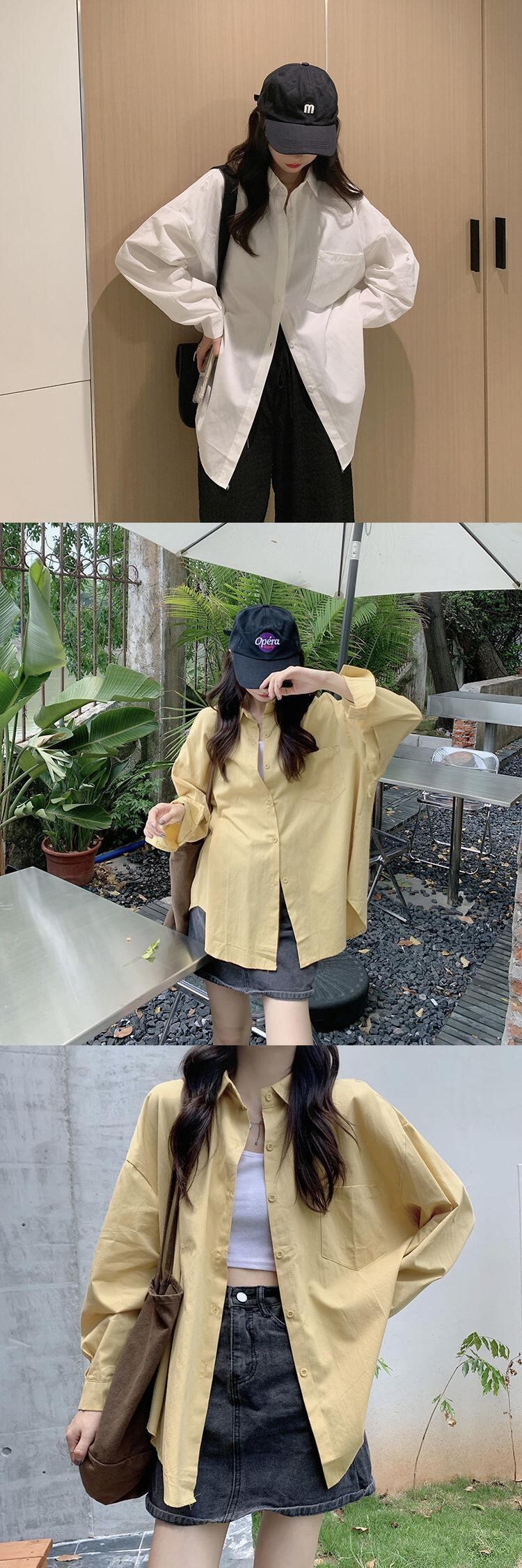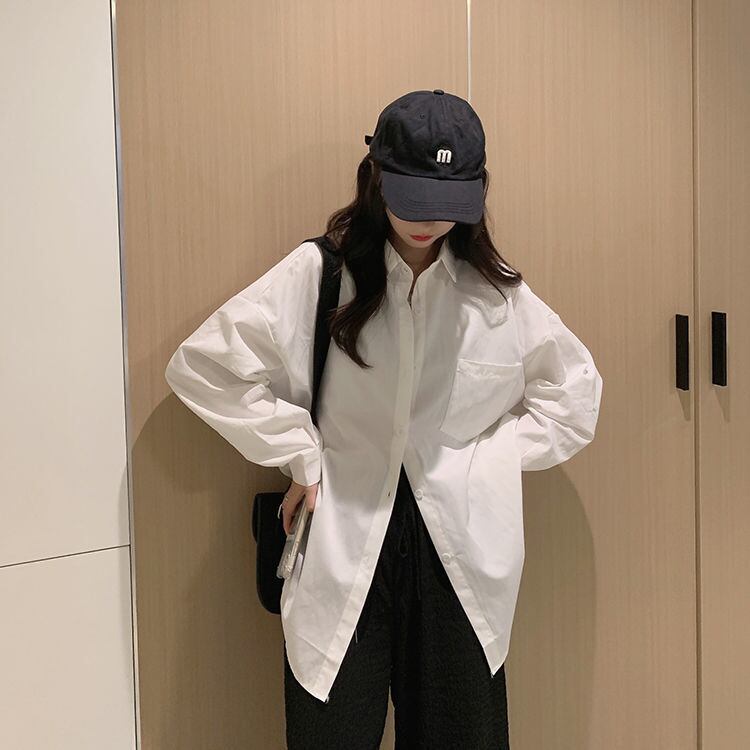 ホワイト 2021 ルーズコットントップシャツ女性女性の無地トップス春と夏の女性の特大シャツトップス スプリング 春物 サマー 夏物 ソリッドカラー