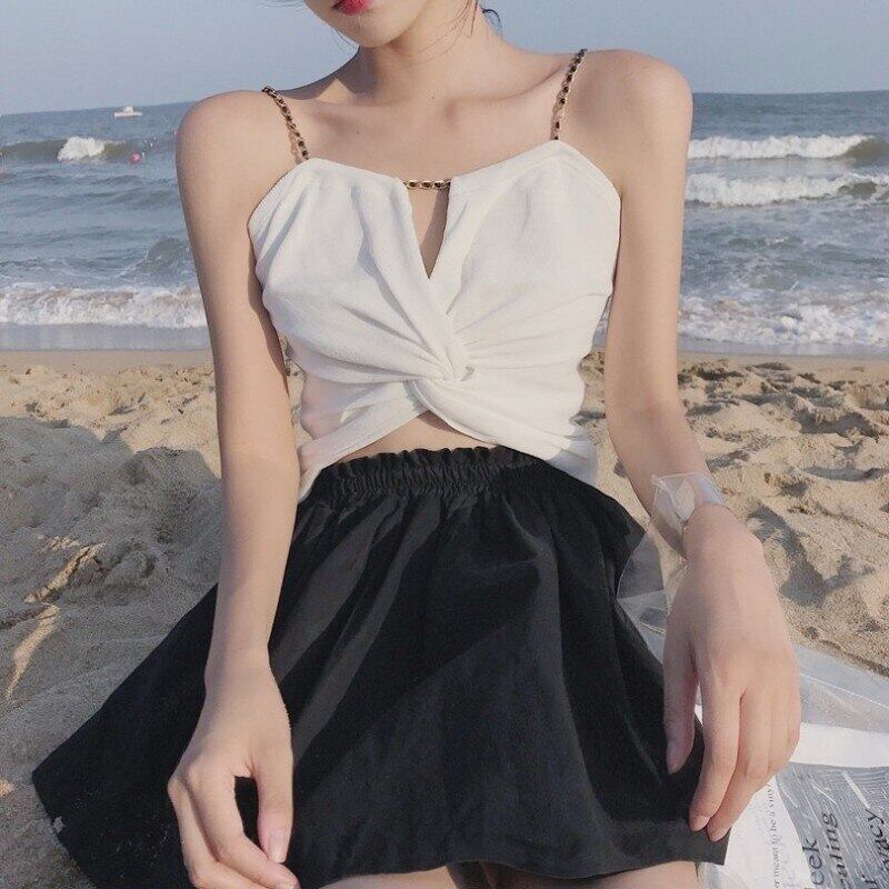 セクシーなキャミ女性チェーンタンクベストクロップトップ女性の夏 2021 ノースリーブボディコンベスト Y2k ホルタートップ サマー 夏物
