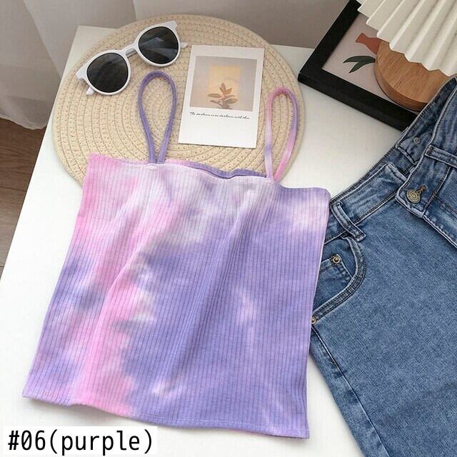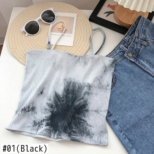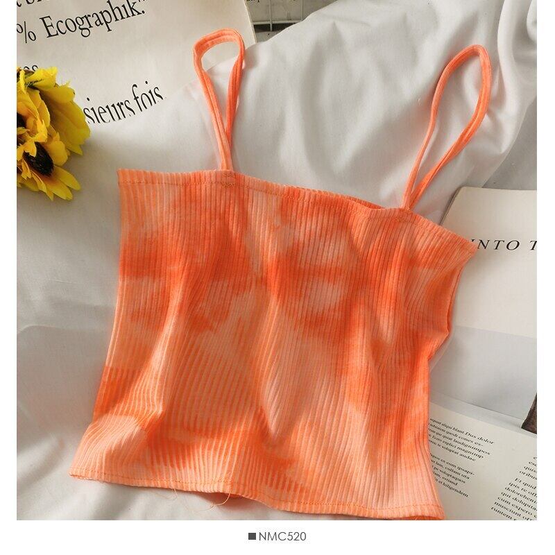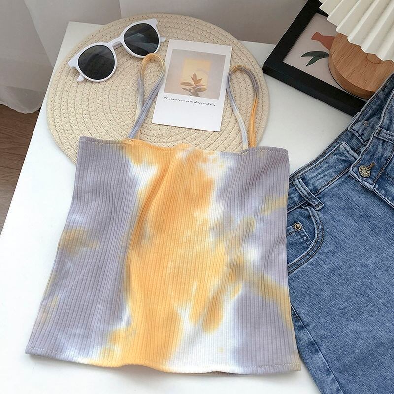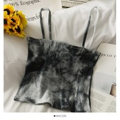 女性タイダイニットスパゲッティストラップキャミクロップタンクトップノースリーブトップス y2k キャミソールシックな美的