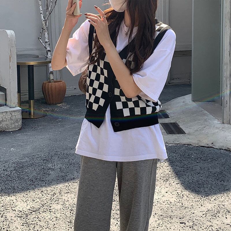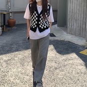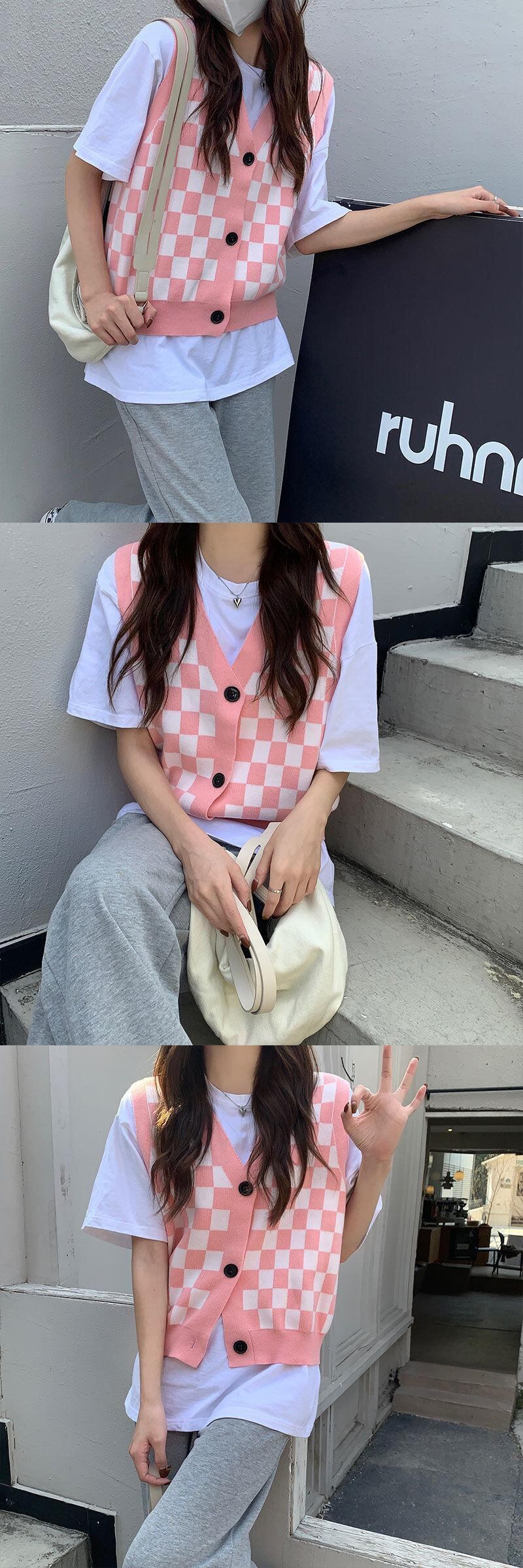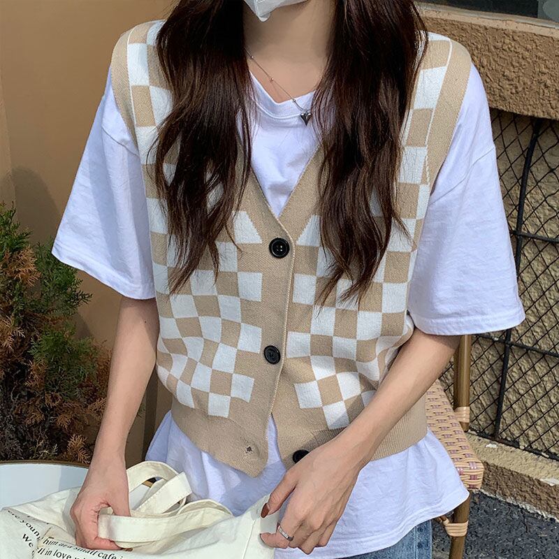 秋の女性の V ネック ノースリーブ ニット クロップ カーディガン プリント セーター ベスト ボタン トップス プレッピー セーター Y2k オータム 秋物 Vネック