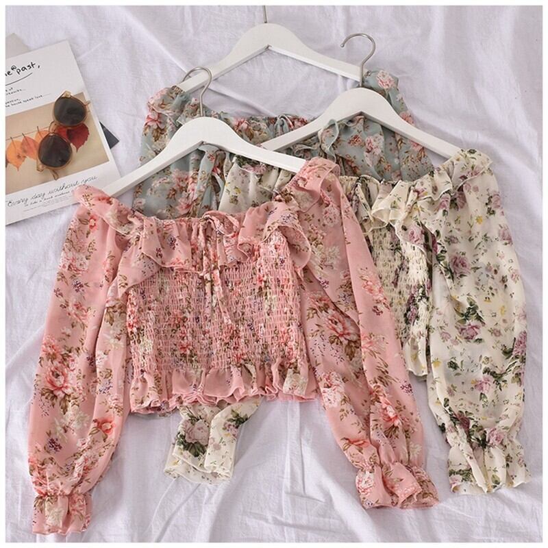 パフスリーブトップ 2021 春と秋の気質シフォンラウンドネックオールマッチスリム長袖シャツ女性 ロング スプリング 春物 オータム 秋物 Oネック