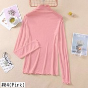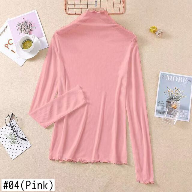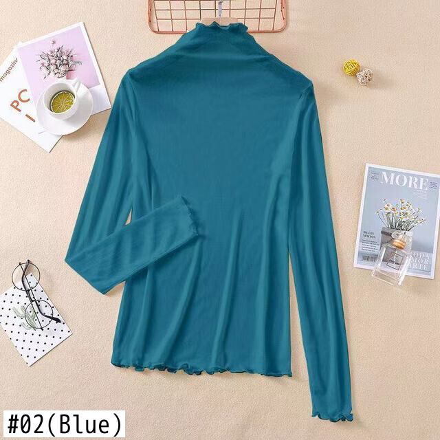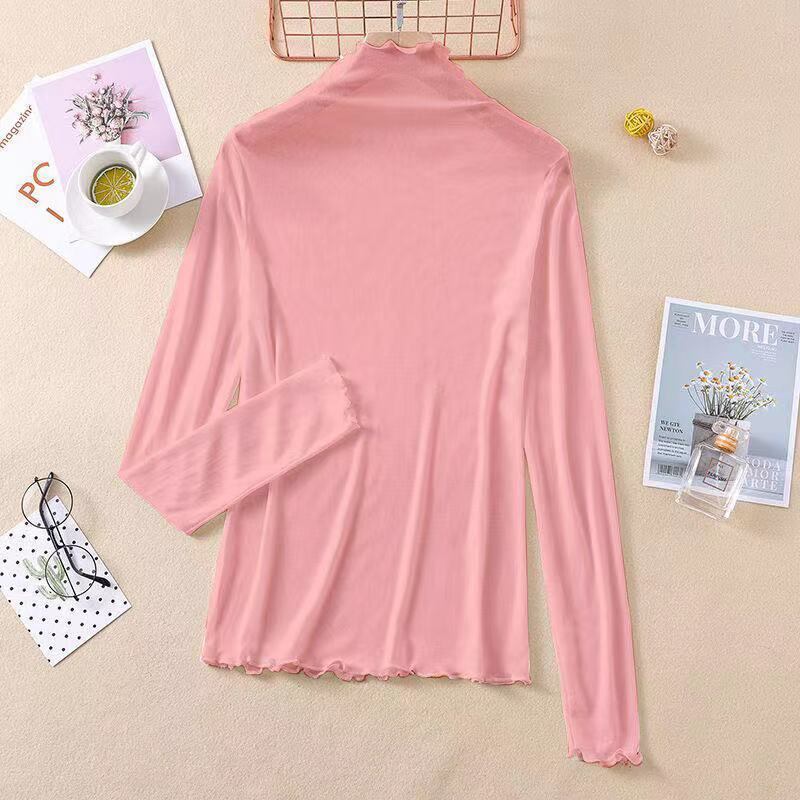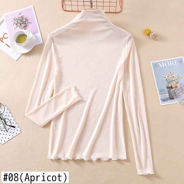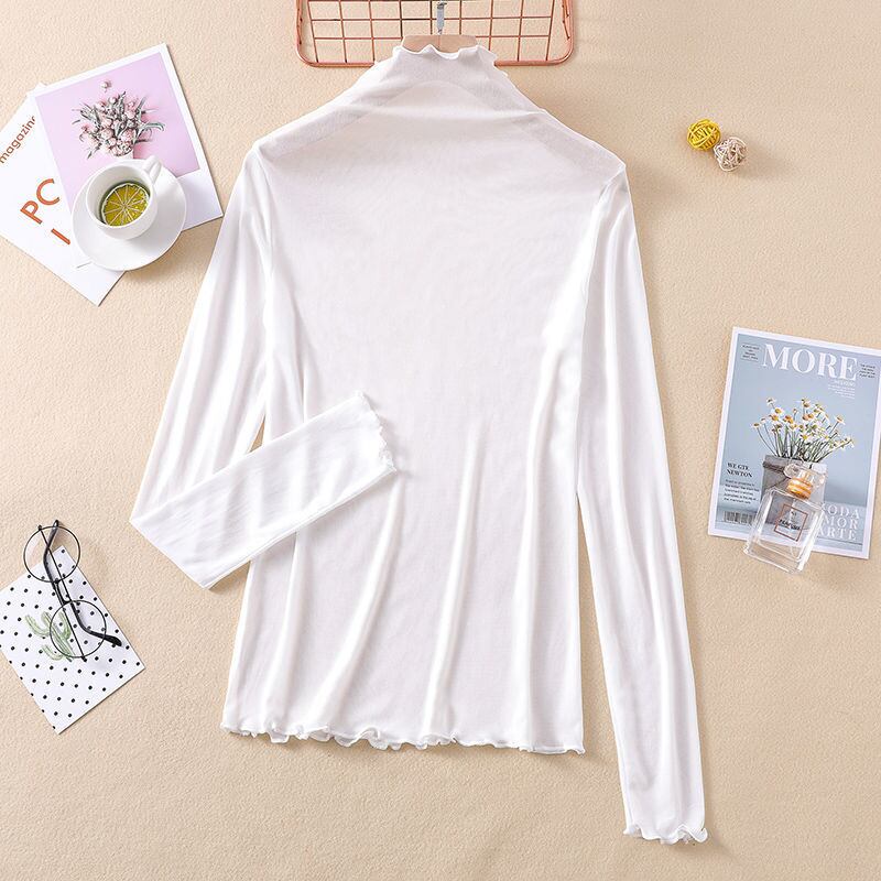 2021 女性長袖薄型 Tシャツタートルネック底入れシャツフリルトップ原宿シャツベーシック Tシャツ Y2k 美的 ロング ラッフル かわいい