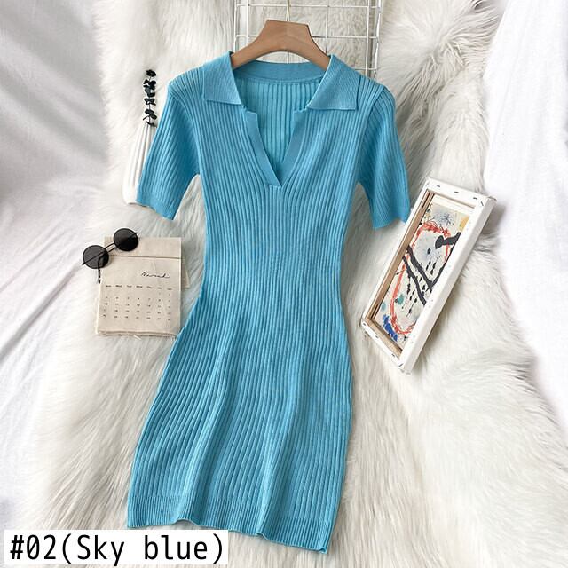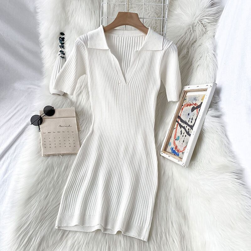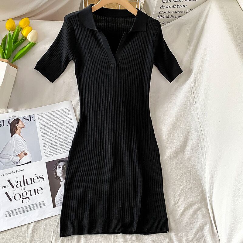 フレンチウエスト痩身ニットドレス女性甘い夏シンプルなウエストヒップ抱きタイトフィット Vestidos ミニドレス 大人ガーリー スウィート キュート カジュアル サマー 夏物