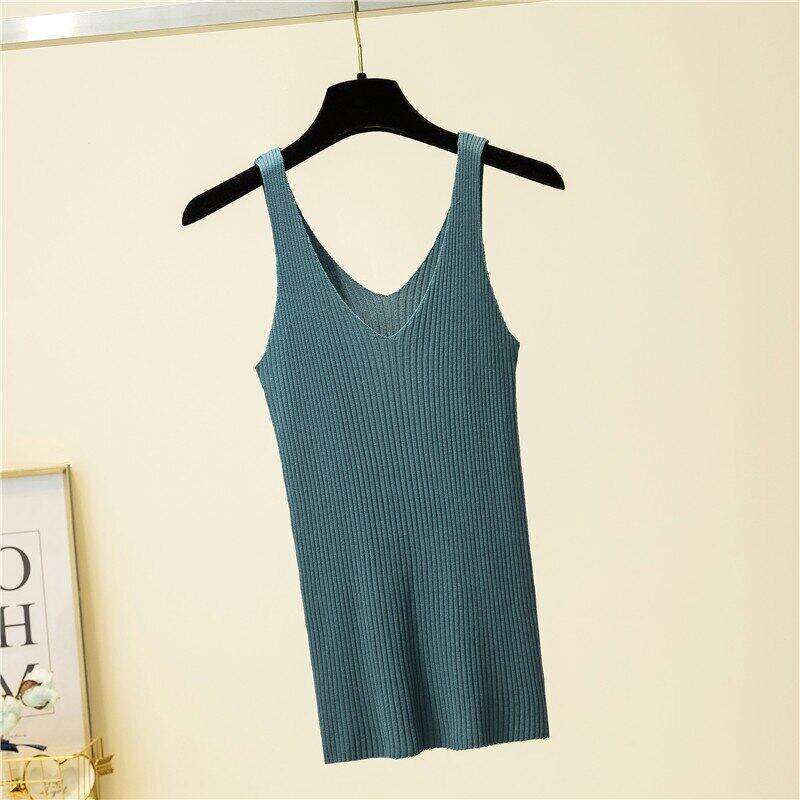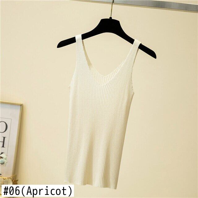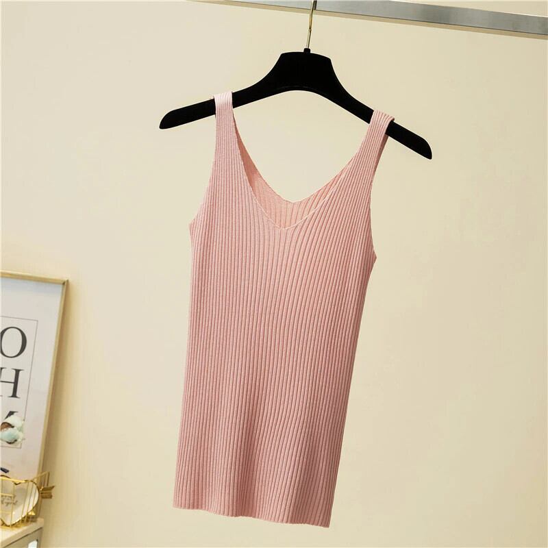 夏の女性の無地ノースリーブニット弾性スリムタンクトップキャミスリングトップスベストキャミソール 2021 服 エラスティック 伸縮 サマー 夏物 ソリッドカラー