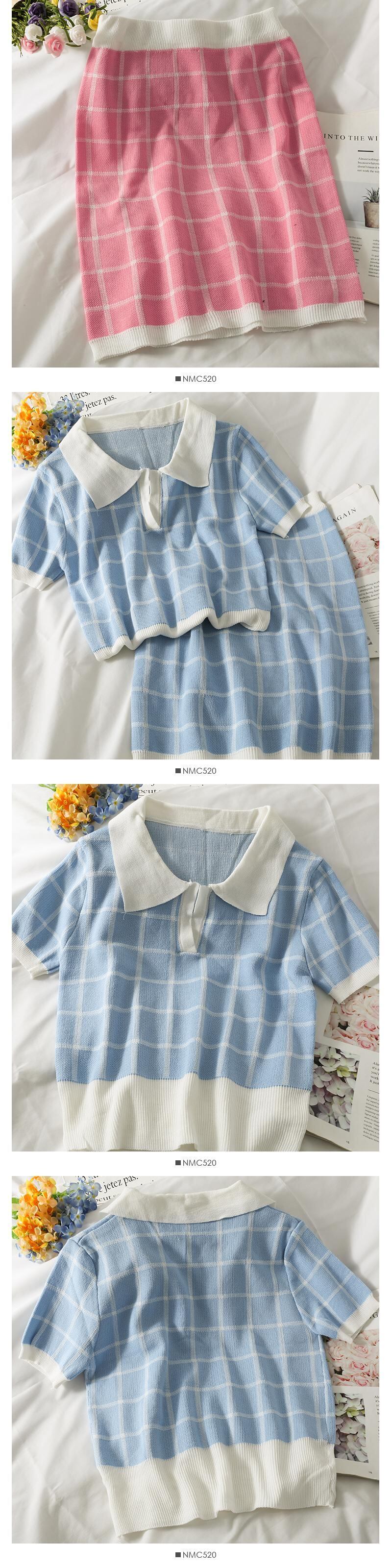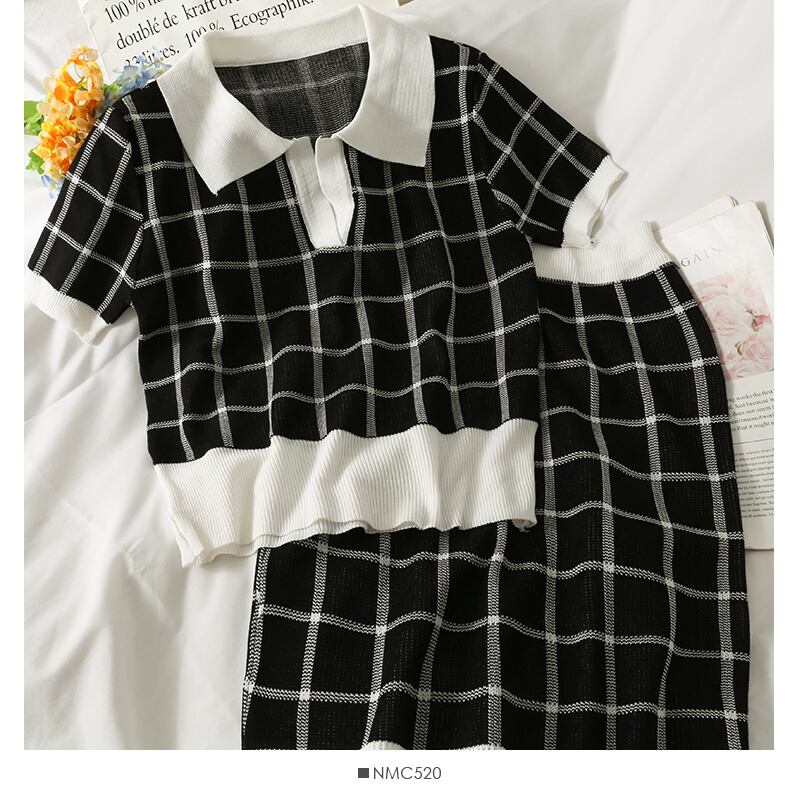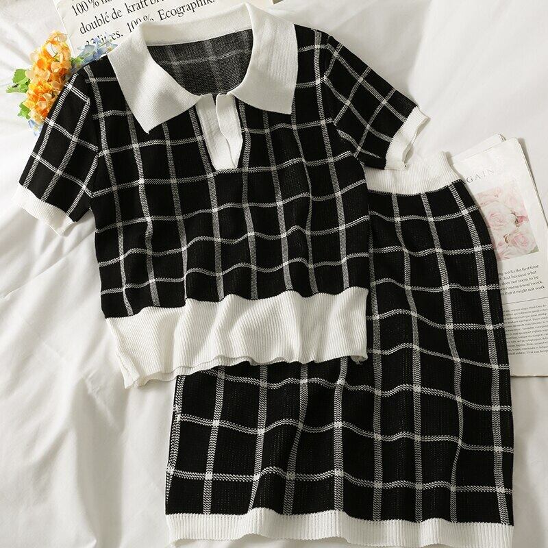 夏の女性のセット 2 ピーススーツ半袖 Tシャツとウエストミニスカート格子縞の衣装ブラウス Y2k ストリート ショート ハーフスリーブ サマー 夏物
