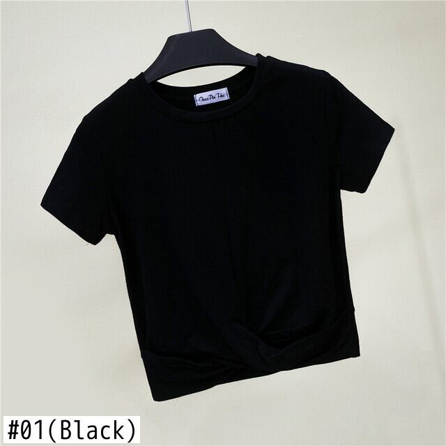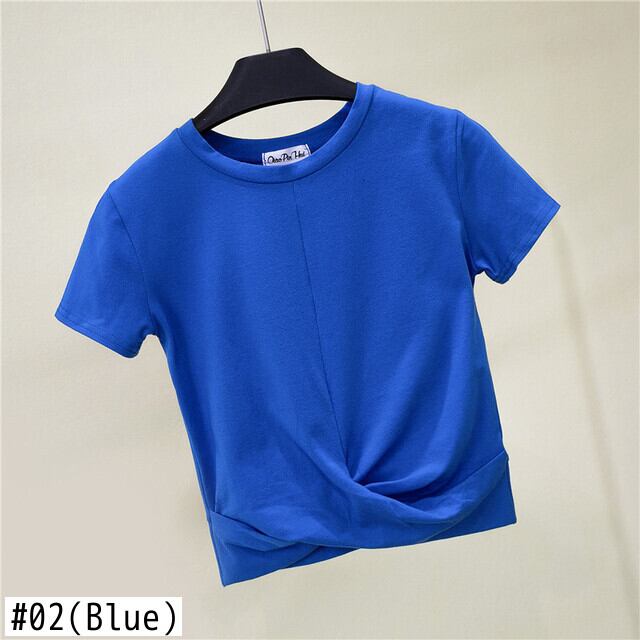 レディース 2021 Y2k 無地 半袖 Tシャツ シャーリング クロップトップ Tシャツ ショート ハーフスリーブ ソリッドカラー
