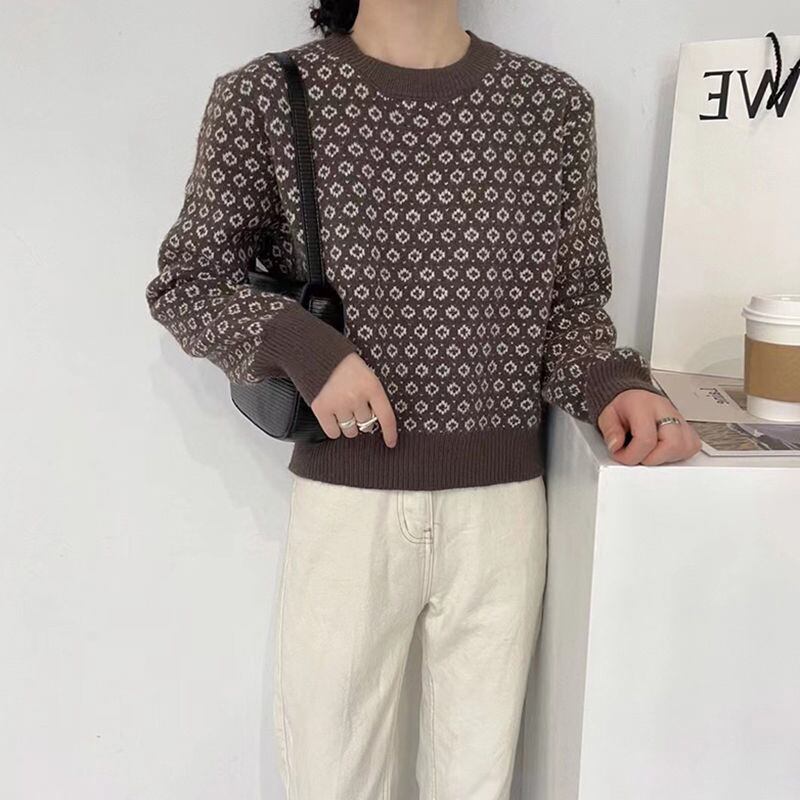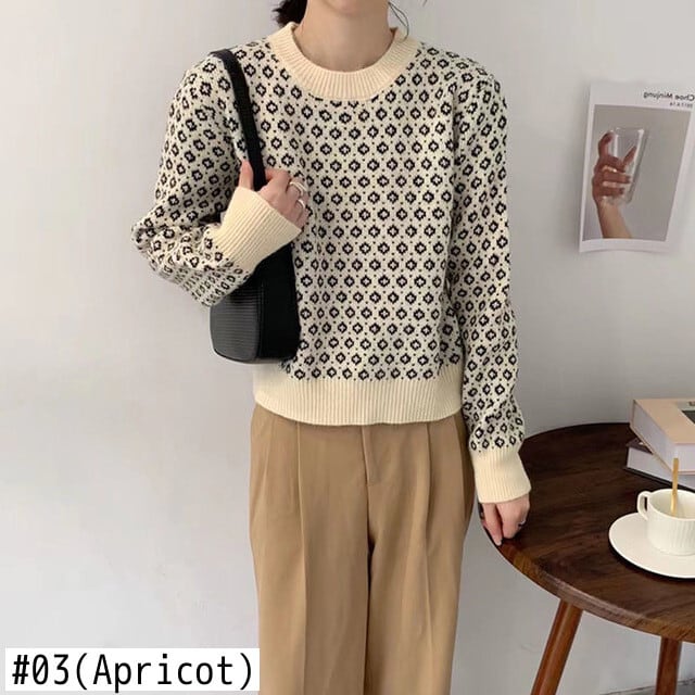 2021 秋の女性のセーター長袖 O ネックルースポロオーバーセーター花柄ニットジャンパートップ ロング オータム 秋物 Oネック