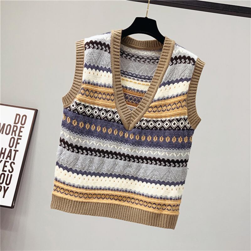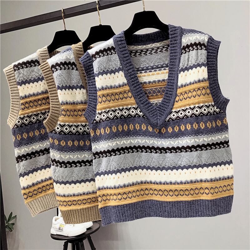女性セーターベストプルオーバー秋冬ルーズセーター V ネックベストチョッキプレッピースタイル Y2k タンクトップ オータム 秋物 ウィンター 冬物 Vネック