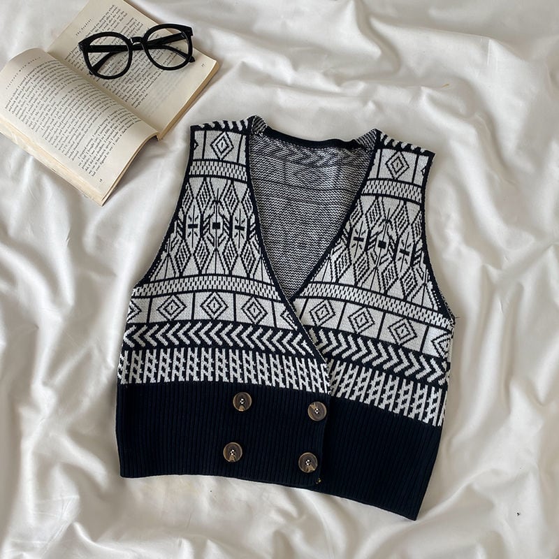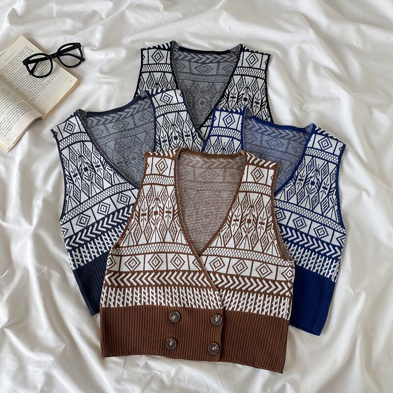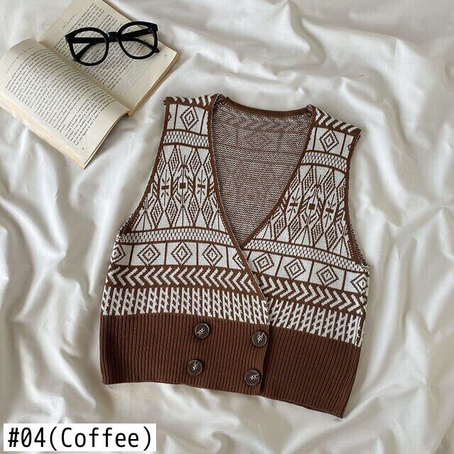 セーター ベスト レディース トレンディ ルーズ シングルブレスト オールマッチ Vネック レトロ 秋 2021 Y2k トップス