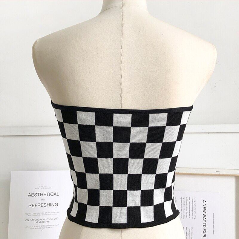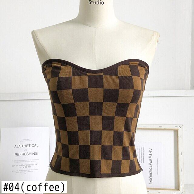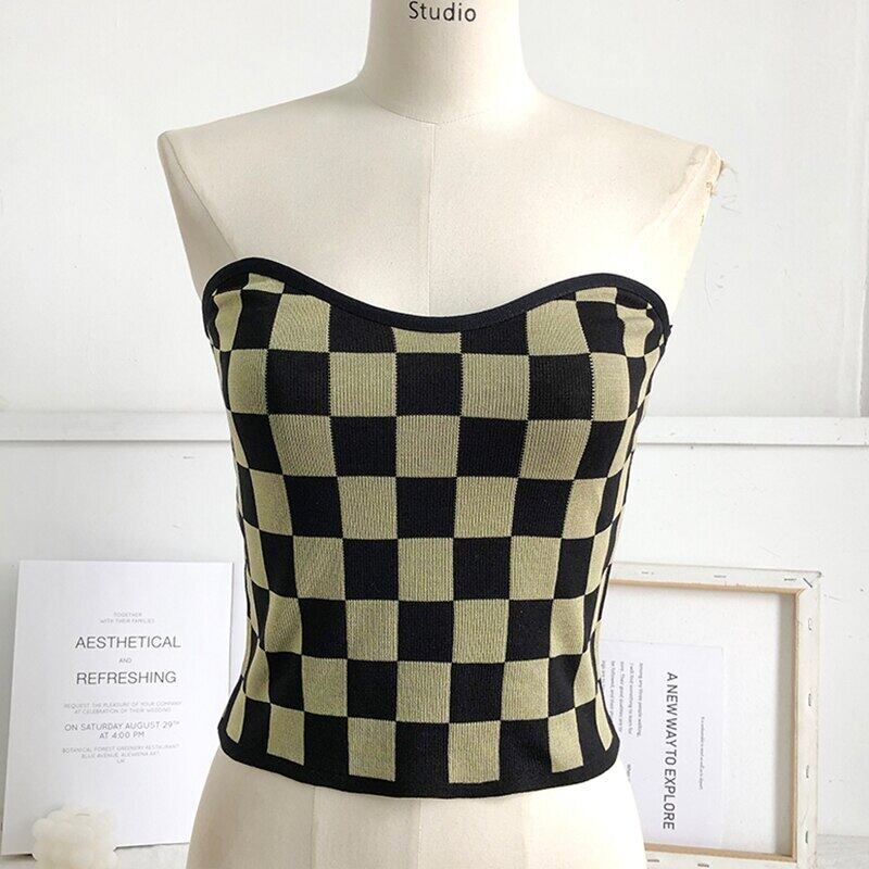 チェック柄へそオフショルダーストラップのベストの女性の夏 2022 スリムニットタンクトップノースリーブキャミソールトップス サマー 夏物