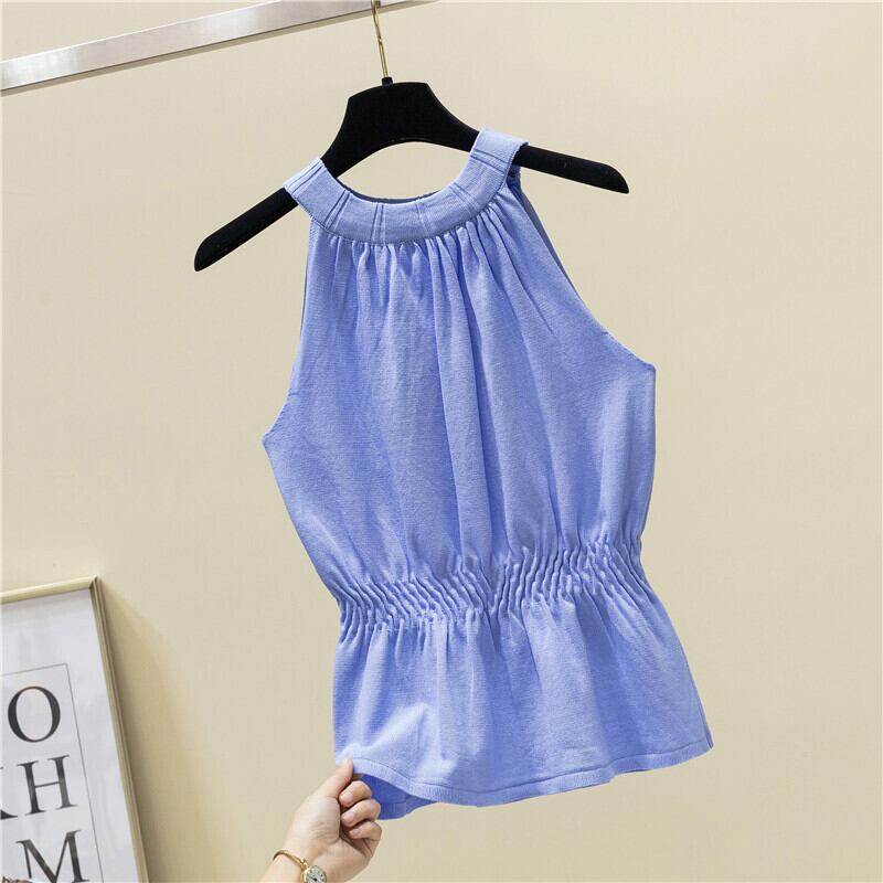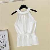 女性ソリッドノースリーブ弾性ウエストホルタークロップタンクトップキャミ白黒トップス y2k キャミソール服 ホワイト ブルー ブラック エラスティック 伸縮 ソリッドカラー
