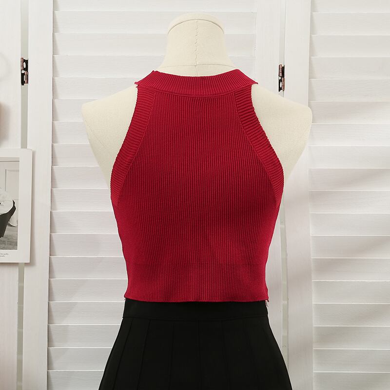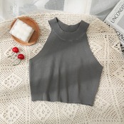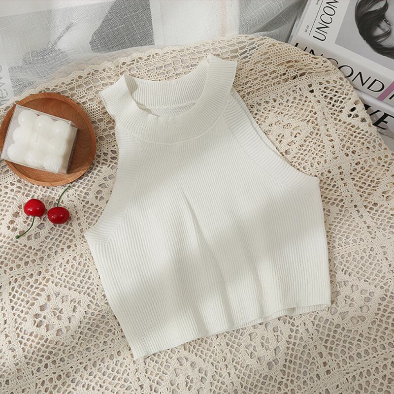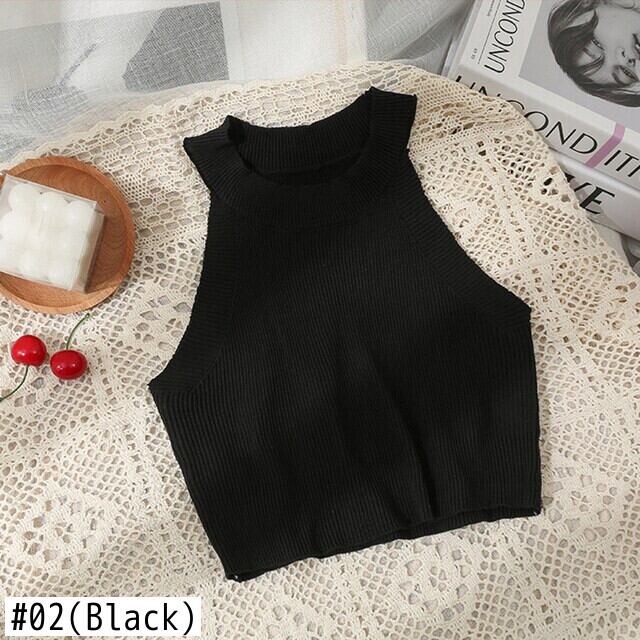 オフショルダーニットタンクトップ女性の夏 2022 薄型ニットベストホルタークロップドコルセットトップ Y2k キャミソール サマー 夏物