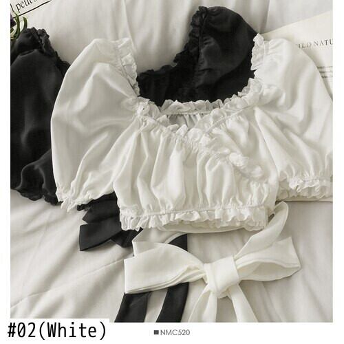 女性の夏のブラウス 2021 パフスリーブフリル裾クロップトップシックなネクタイウエストチューブトップシャツ Y2k ストリート サマー 夏物