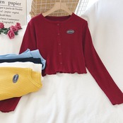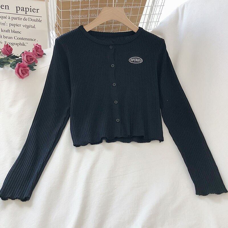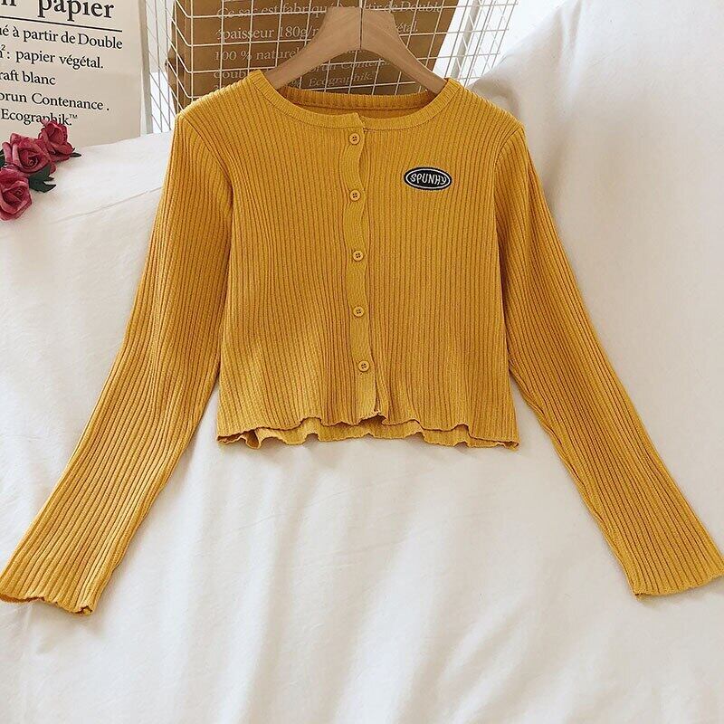 2021 春秋長袖ニットカーディガンボタンセーター女性ジャケットスリムリブクロップトップスタイル ロング スプリング 春物 オータム 秋物