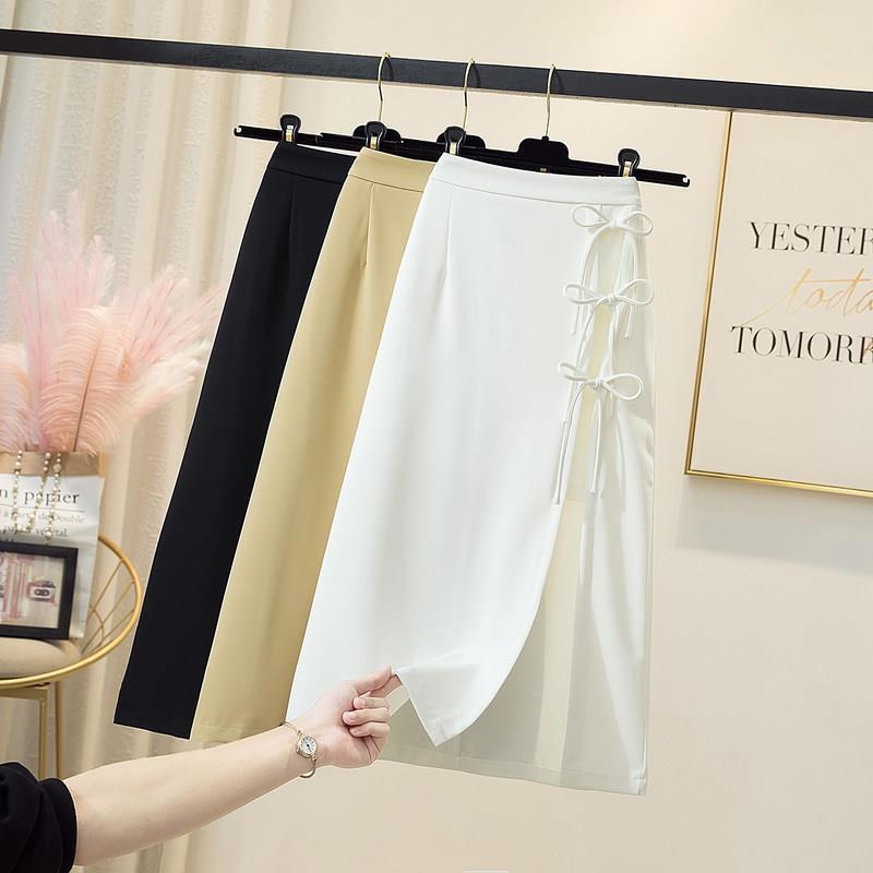 女性レディ包帯ラップスカート夏ウエストパーティー包帯タイアップ非対称スプリットミディスカートストリート服 サマー 夏物