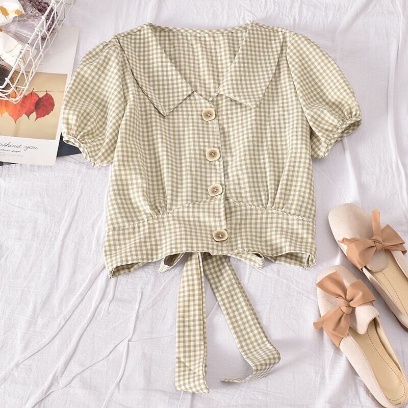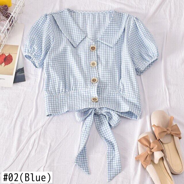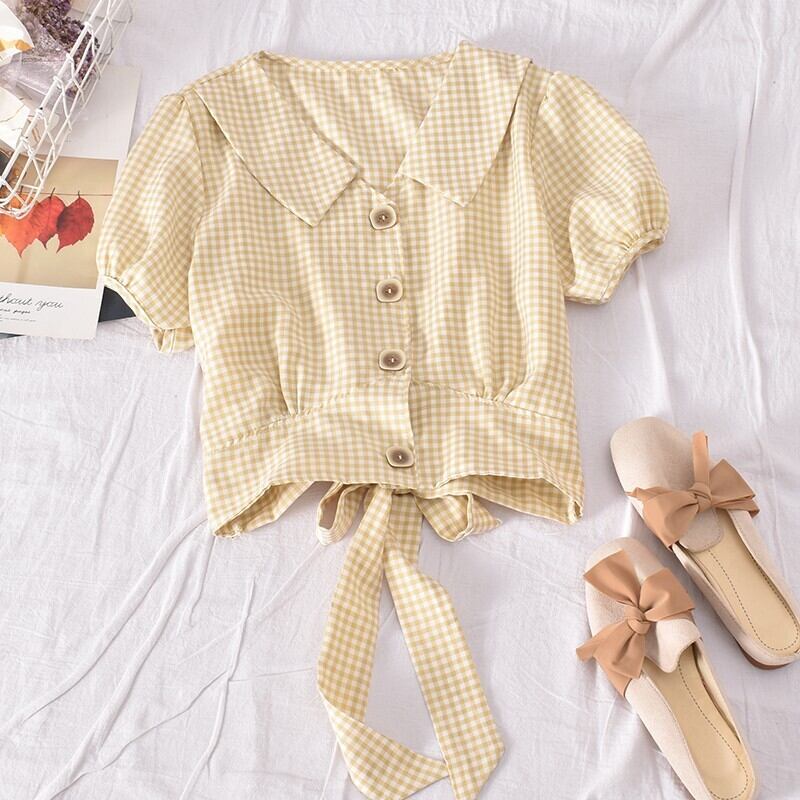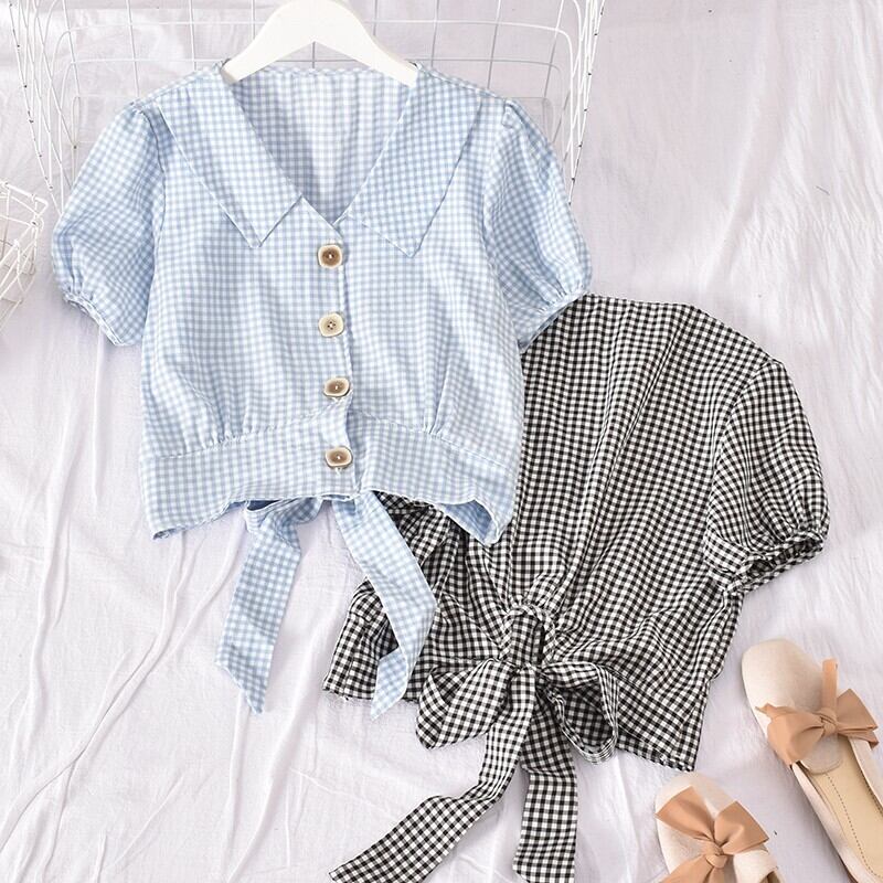 バンデージ チェック柄 レディース 半袖 シャツ ルーズ ブラウス - ウエスト 夏 Vネック Tシャツ ショート ハーフスリーブ サマー 夏物
