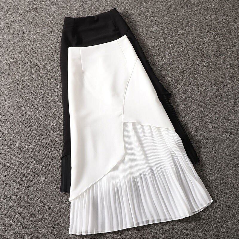 ミッドレングス プリーツ スカート女性の 2021 セクシーなレース メッシュ スカート春/夏ステッチ中空透視スカート女性シフォン スプリング 春物 サマー 夏物