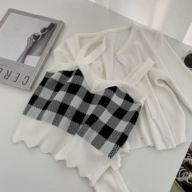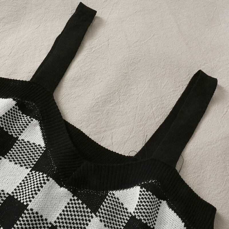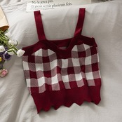 女性チェック柄ホルタートップスニットキャミセクシーなクロップトップタンク 2022 夏キャミソールトップス Y2k ストリート サマー 夏物