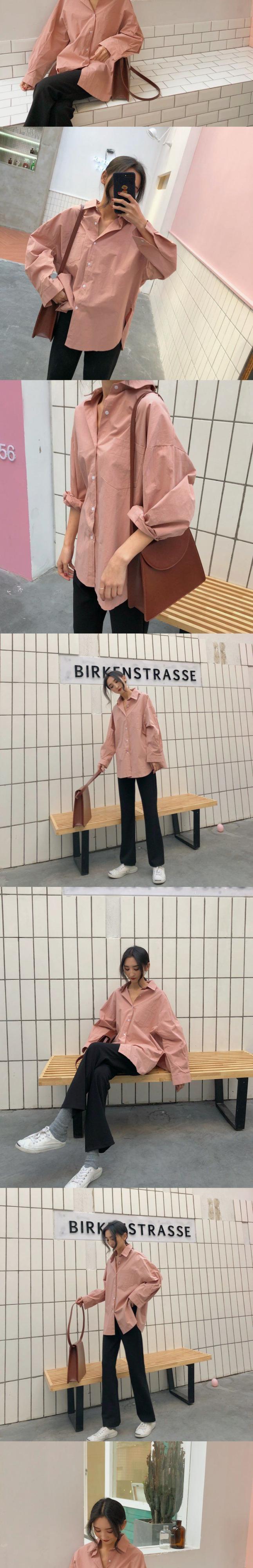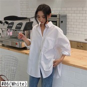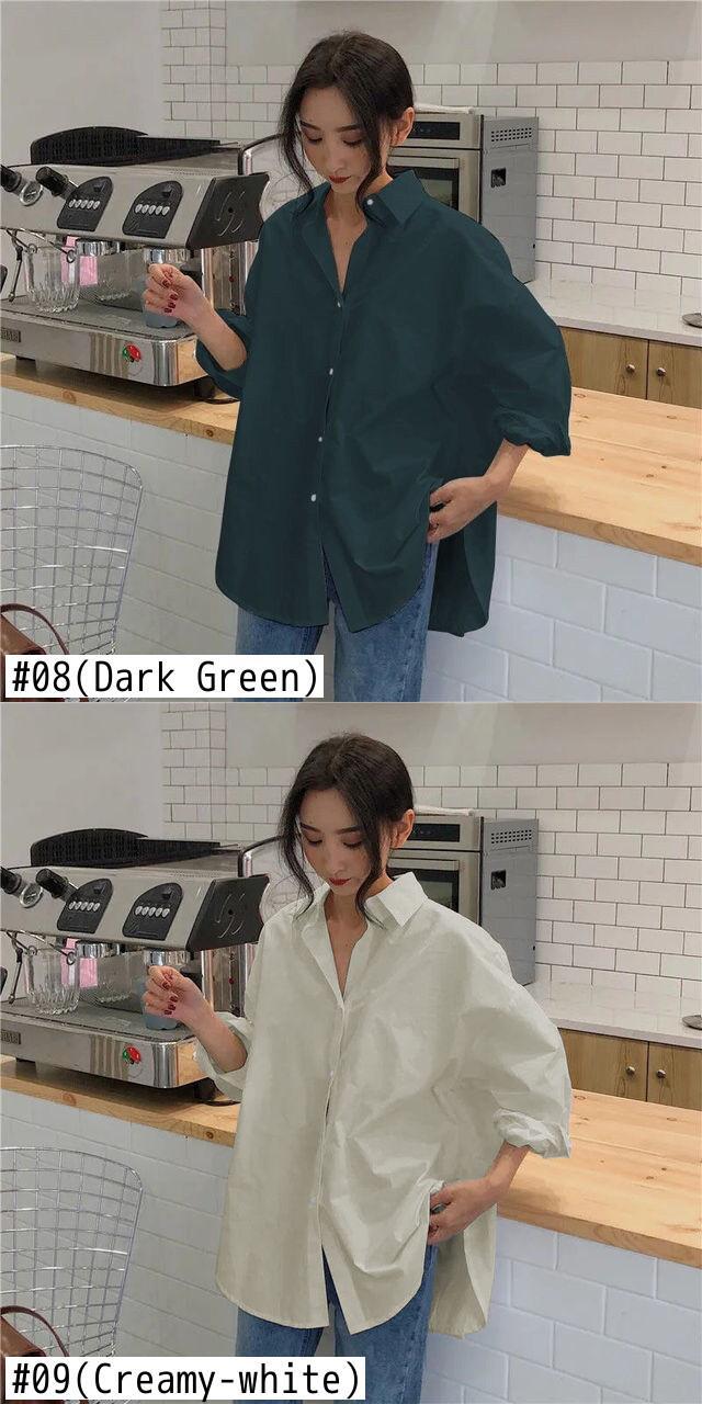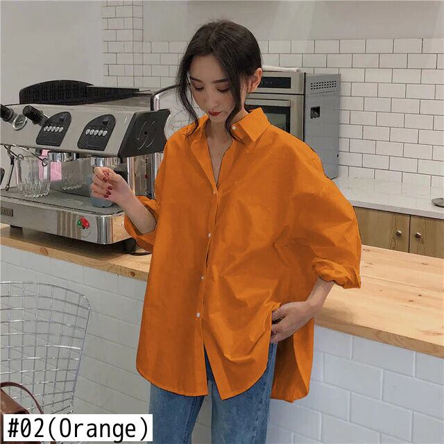 2021年バージョンの無地ルーズオーバーサイズブラウスレトロ長袖オフィスと有能なボタンシャツ ロング ソリッドカラー 会社 学校 通勤や通学にも