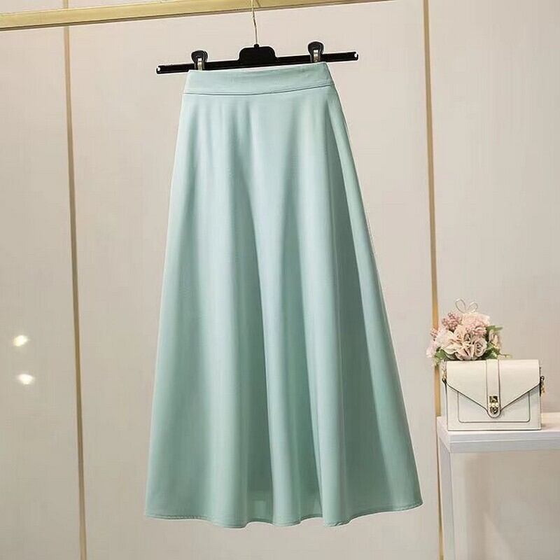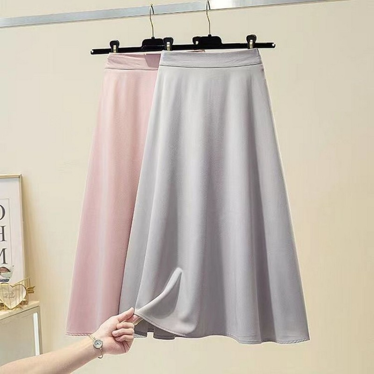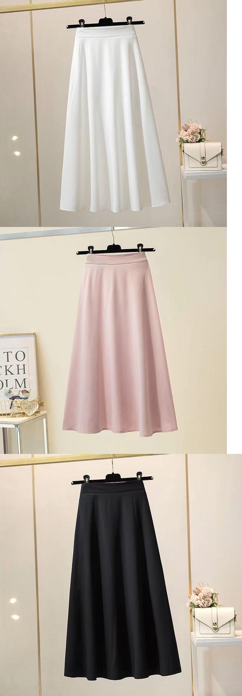 夏のスカートの女性 2021 無地ウエスト A ライン ロング スカート Y2K サマー 夏物 Aライン ソリッドカラー