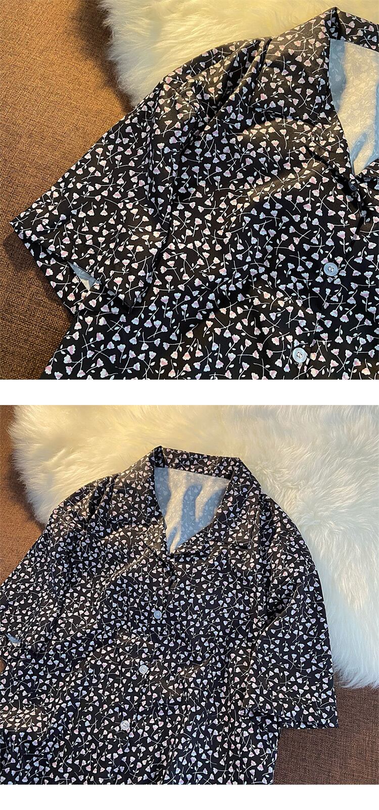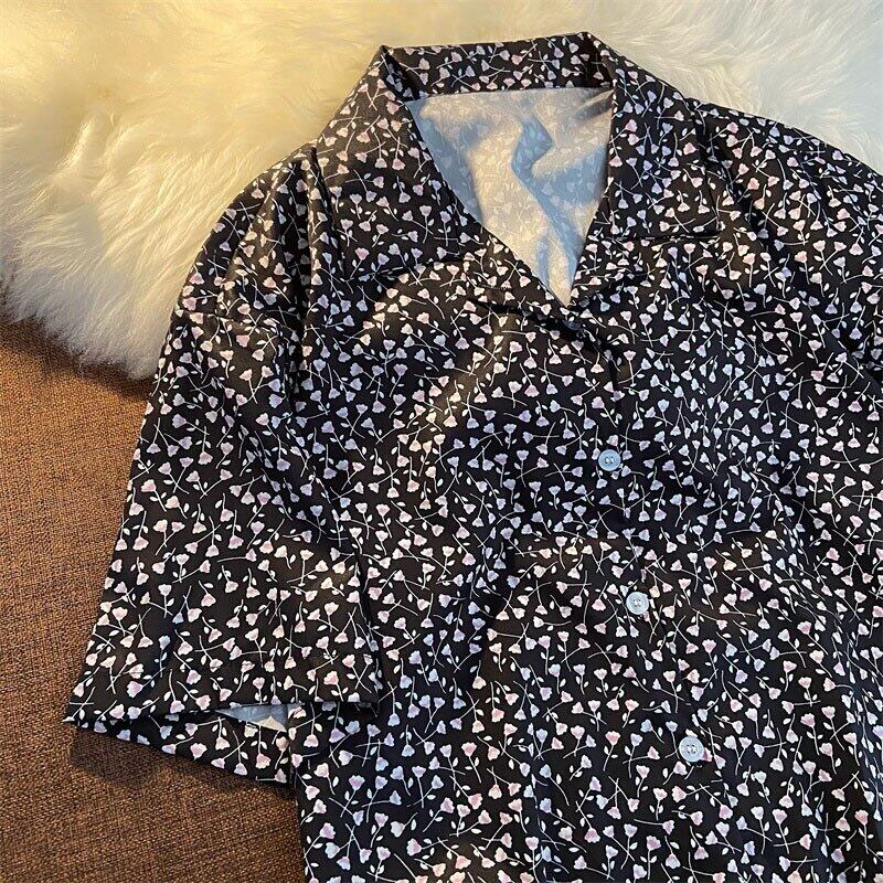 プラスサイズの女性 2021 夏半袖花柄ボタンアップシャツトップ Y2k ブラウス ショート ハーフスリーブ 大きめサイズ サマー 夏物