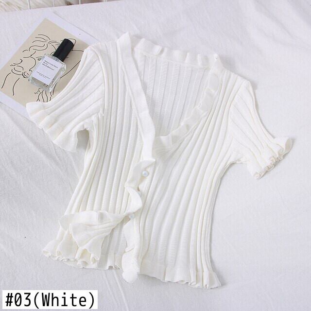 女性の夏のブラウス 2021 フリル V ネック半袖 Tシャツ スリム タイト Tシャツ Y2k シャツ ストリート ニット ショート ハーフスリーブ ラッフル サマー 夏物 Vネック
