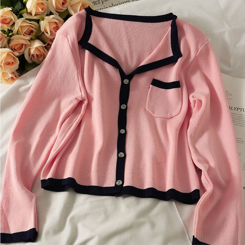秋 2021 レディースターンダウンカラーシャツ長袖シングルブレストカーディガンニットウェアブラウススタイルトップス ロング