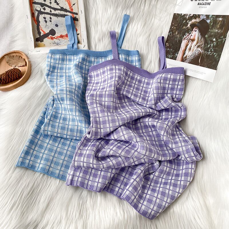 2021 夏セクシーなノースリーブスリムドレス女性の格子縞のプリントパーティードレスミニキャミドレスガーリー甘くて優しい風 Vestido 大人ガーリー スウィート キュート カジュアル サマー 夏物