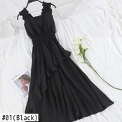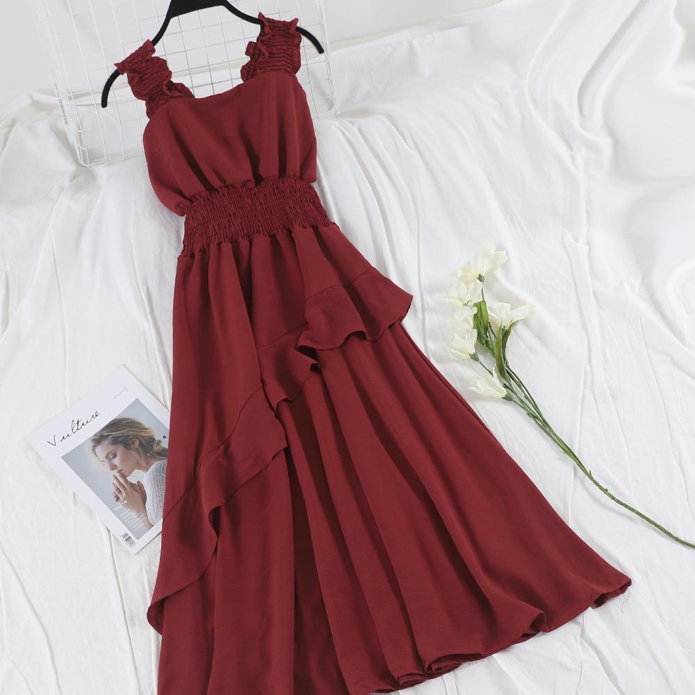夏の女性のドレス 2021 ソリッドノースリーブマキシドレス弾性ウエストウエディングドレスサンドレス エラスティック 伸縮 サマー 夏物 ソリッドカラー