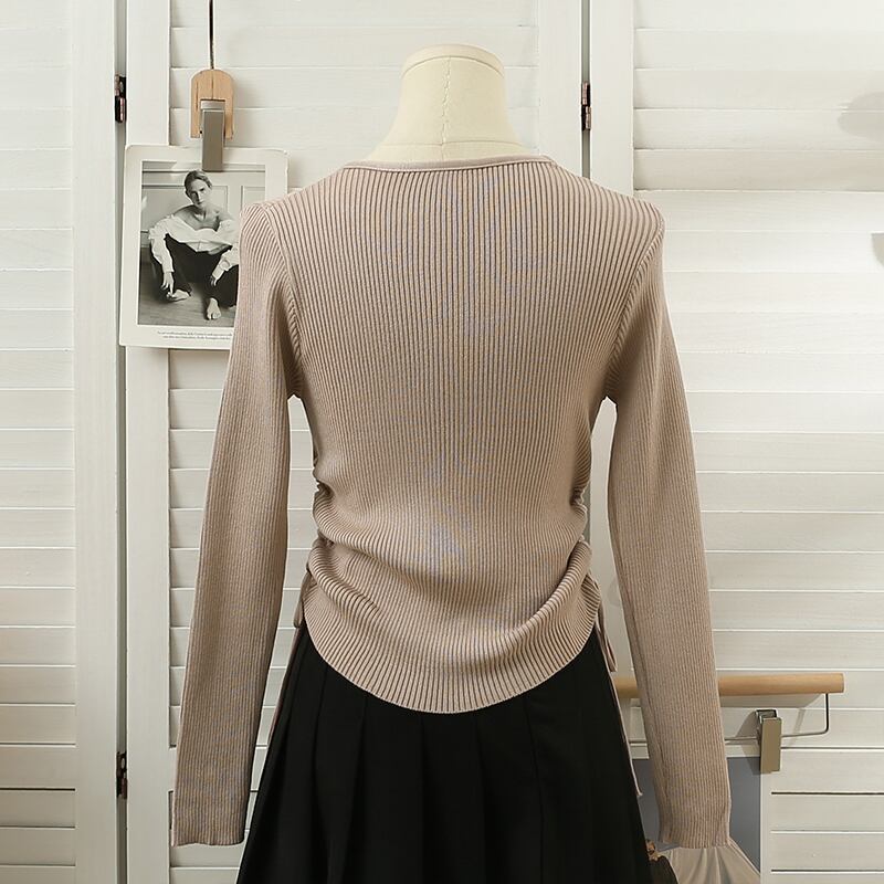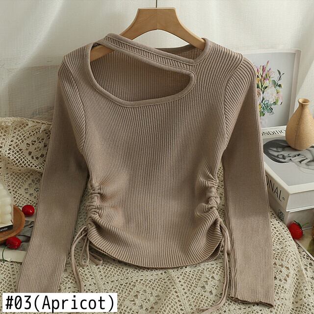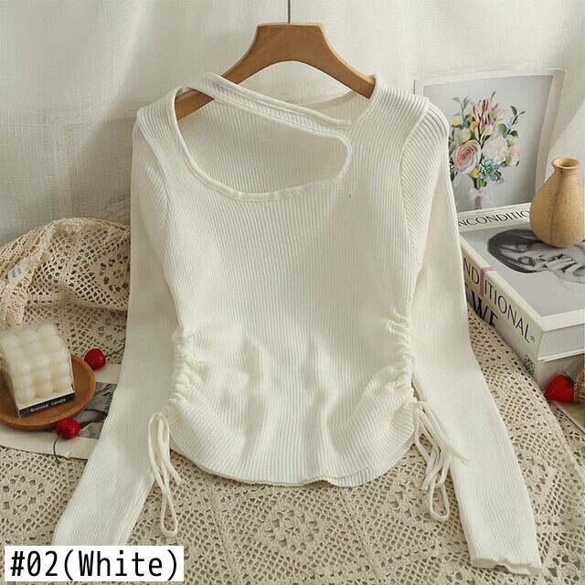 フレンチスタイル長袖 Tシャツ 2022 女性の冬のセータープルオーバーニットジャンパー巾着リブトップス服 ロング ウィンター 冬物