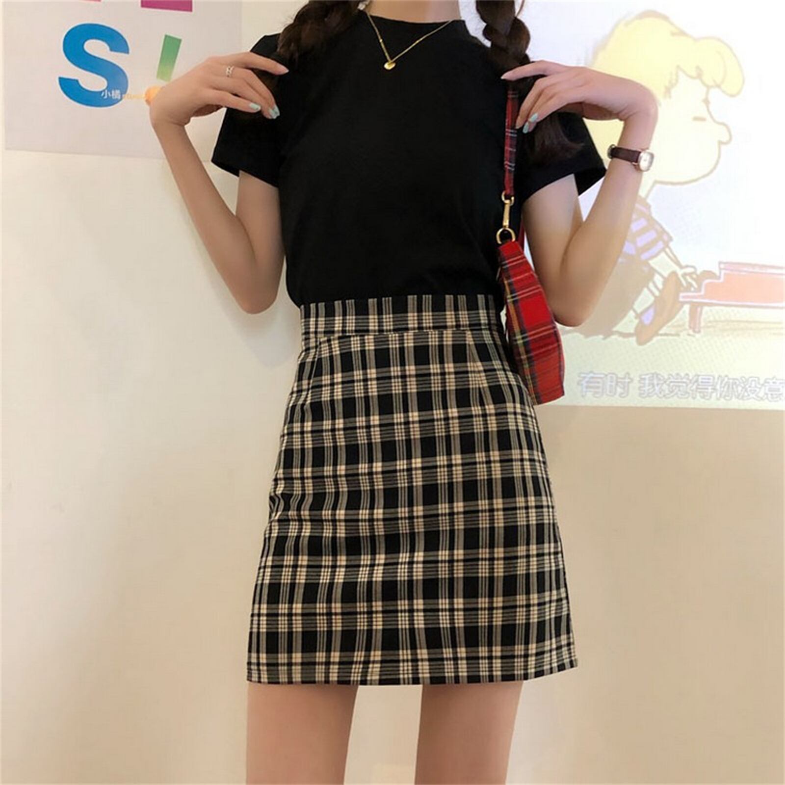 甘夏バッグヒップスカート 2021 レトロチェック柄プリントガール A ラインウエスト痩身ミニスカート 大人ガーリー スウィート キュート カジュアル サマー 夏物 Aライン