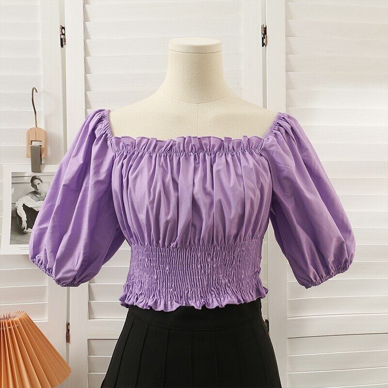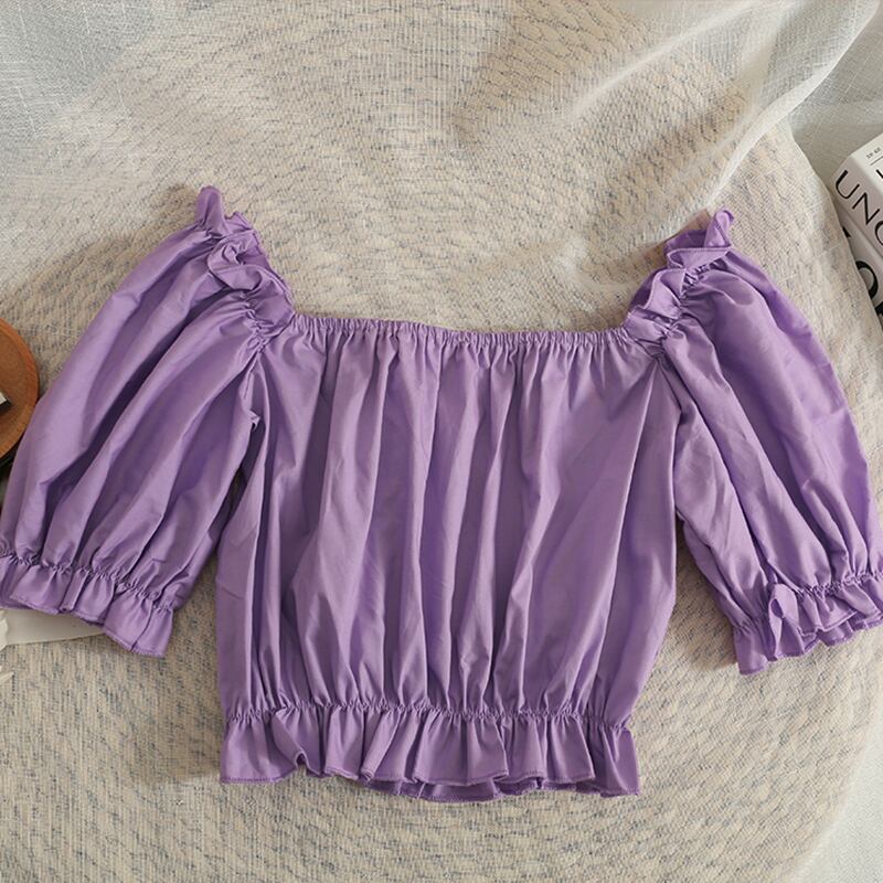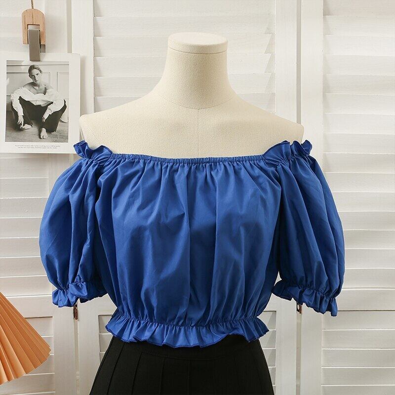 スタイルオフショルダーシャツ女性の夏 2022 シャーリングブラウス半袖 Tシャツクロップトップストリート Tシャツ ショート ハーフスリーブ サマー 夏物