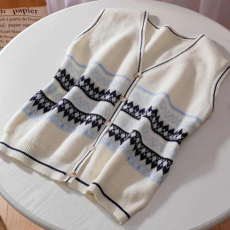 ウェーブプリントノースリーブシックなニットカーディガン女性の秋冬 2021 V ネックセーターベストカバーアップコートチョッキトップ オータム 秋物 ウィンター 冬物 Vネック