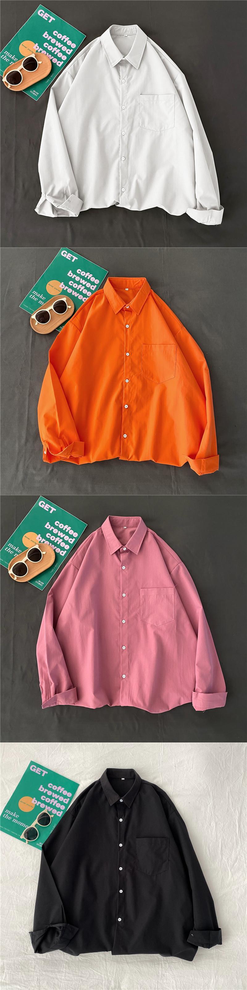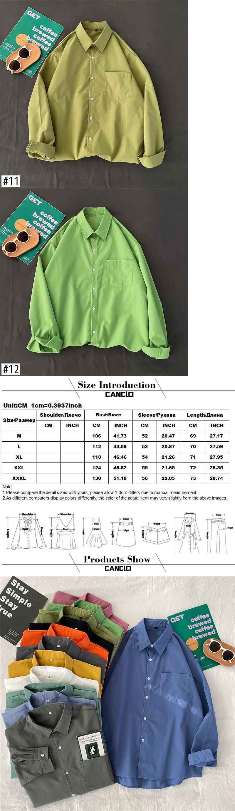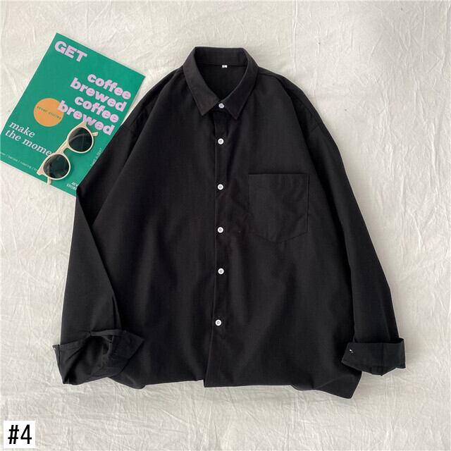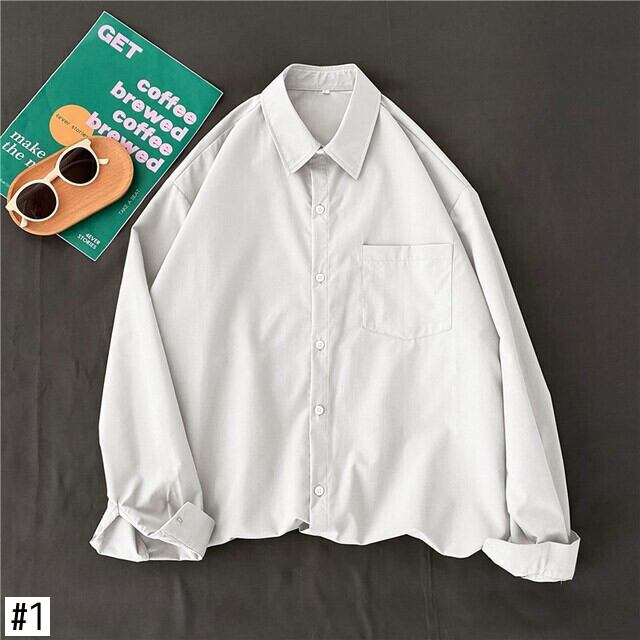 春秋のチュニックレディーストップスボタンアップシャツ原宿ソリッドベーシックロングスリーブブラウス秋ルーズストリートプラスサイズ 長袖 大きめサイズ かわいい スプリング 春物 オータム 秋物 ソリッドカラー
