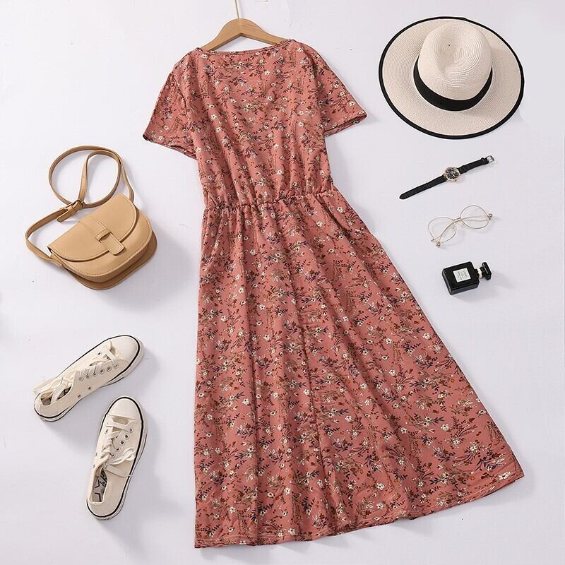 夏の女性のドレス 2021 花柄半袖ミディドレス自由奔放に生きるパーティードレスシックなビーチドレス ショート ハーフスリーブ サマー 夏物