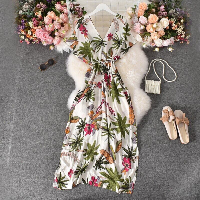 女性のレースアップ パーティー ドレス セクシーなディープ V ネック半袖ドレス パターン印刷ホリデー ボヘミアン ビーチ ドレス ショート ハーフスリーブ Vネック