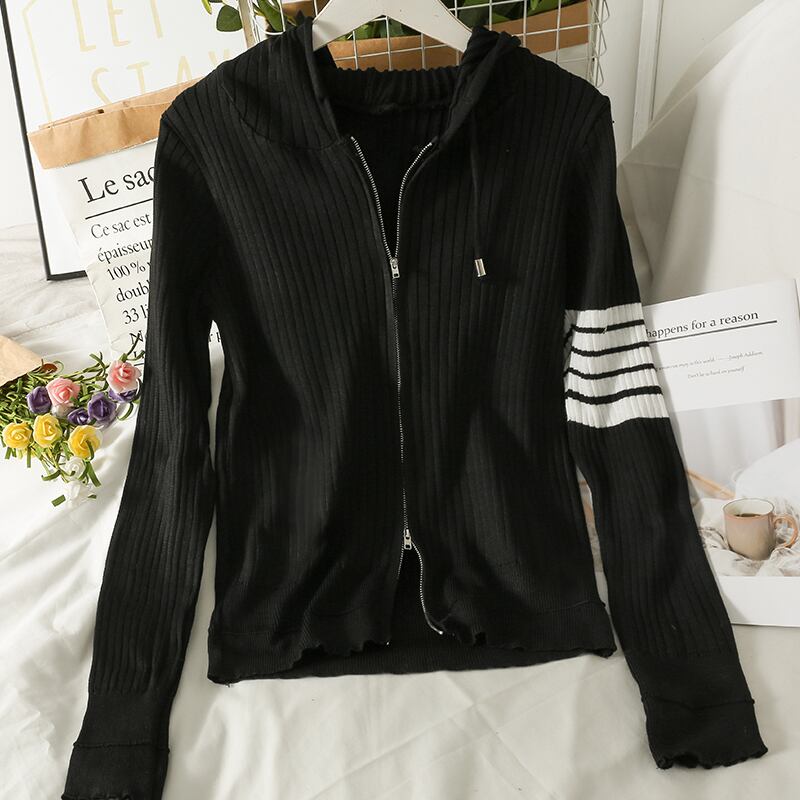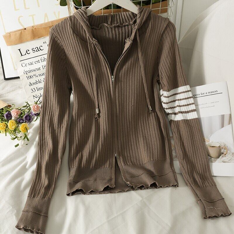 秋 2021 女性ダブルジップアップ固体フード付きスウェットシャツ原宿クロップドセーター Y2k ジャンパートップニット かわいい ソリッドカラー