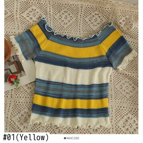 女性の夏 2022 ストライプ半袖 Tシャツクロップトップ Y2k 美的服スキニー Tシャツブラウス ショート ハーフスリーブ サマー 夏物