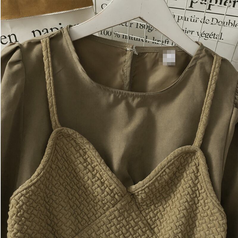 2021年秋女性フェイクツーピースロングスリーブシャツスタイルトップブラウスストリートストリートウェア 長袖