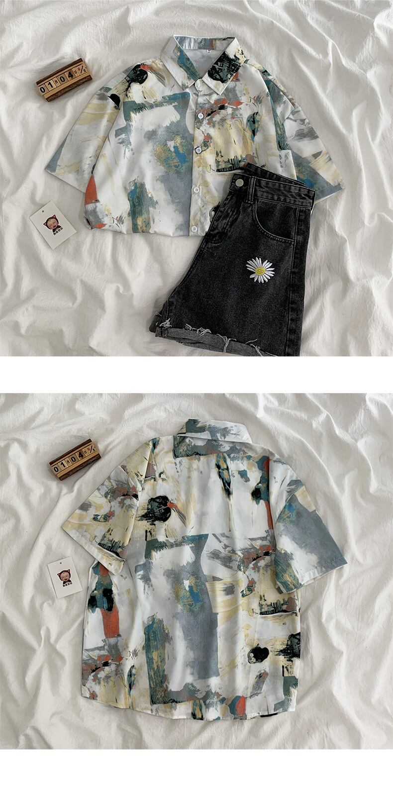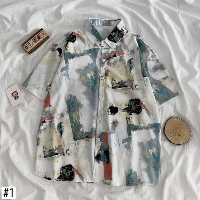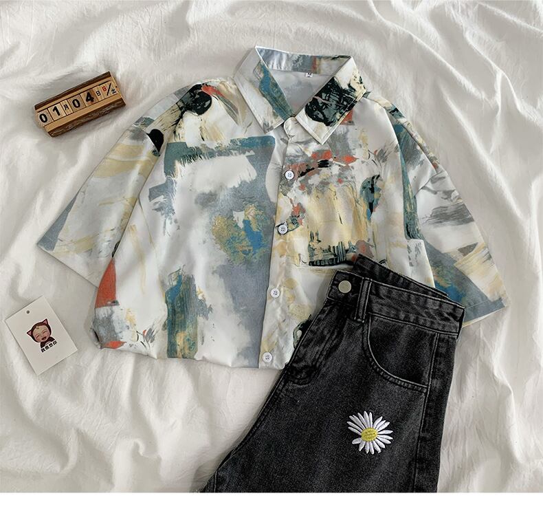 女性ブラウス 2021 絵画グラフィックボタンアップシャツ原宿トップス夏プラスサイズ 大きめサイズ かわいい サマー 夏物