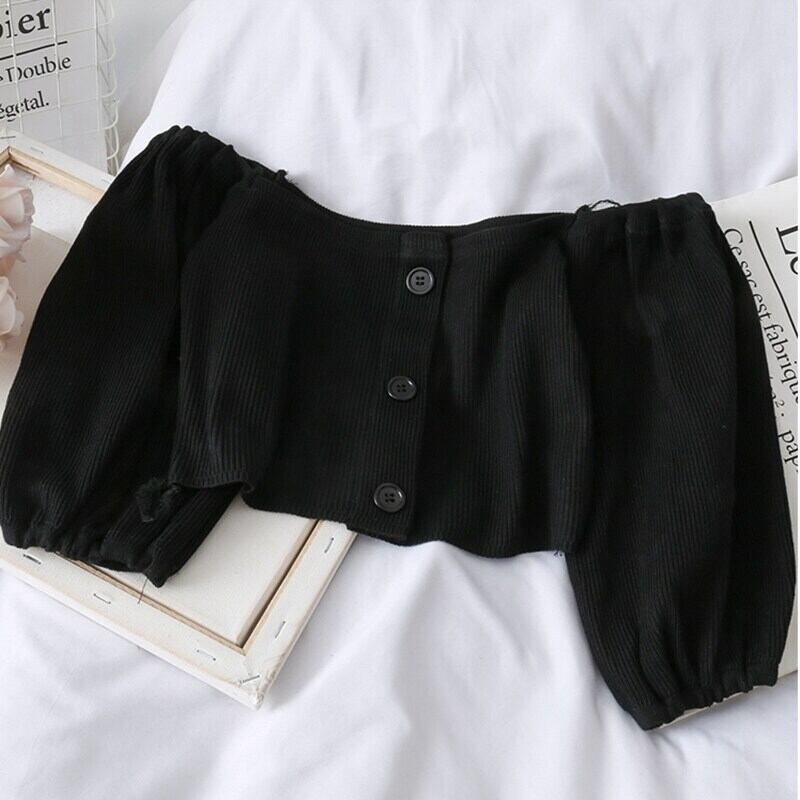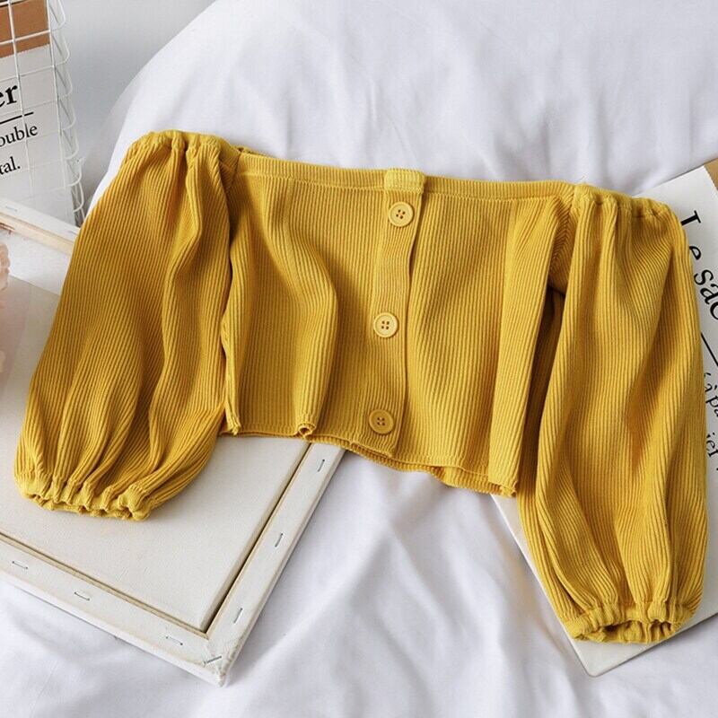 女性の夏のブラウス 2021 オフショルダーパフスリーブクロップトップコルセットシャツ服トップスストリート サマー 夏物