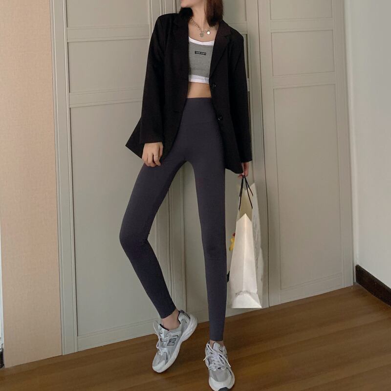 女性の秋 2021 バービーパンツ弾性ウエスト腹部ヒップレギンスサメパンツ上着ヨガ無地スポーツパンツ エラスティック 伸縮 ソリッドカラー